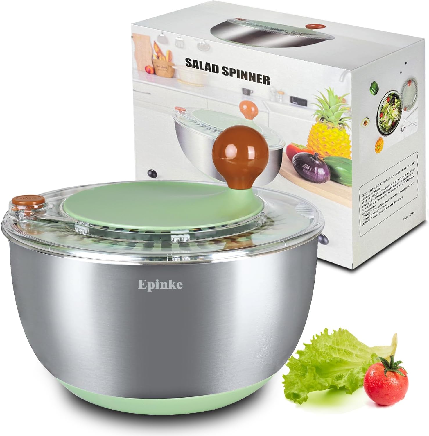 - One-Touch Stop: When you’re ready stainless steel salad spinner quickly stops spinning with a simple touch, saving your time. Also with drain, allowing you to easily pour out excess water, make the salad spinner more simple