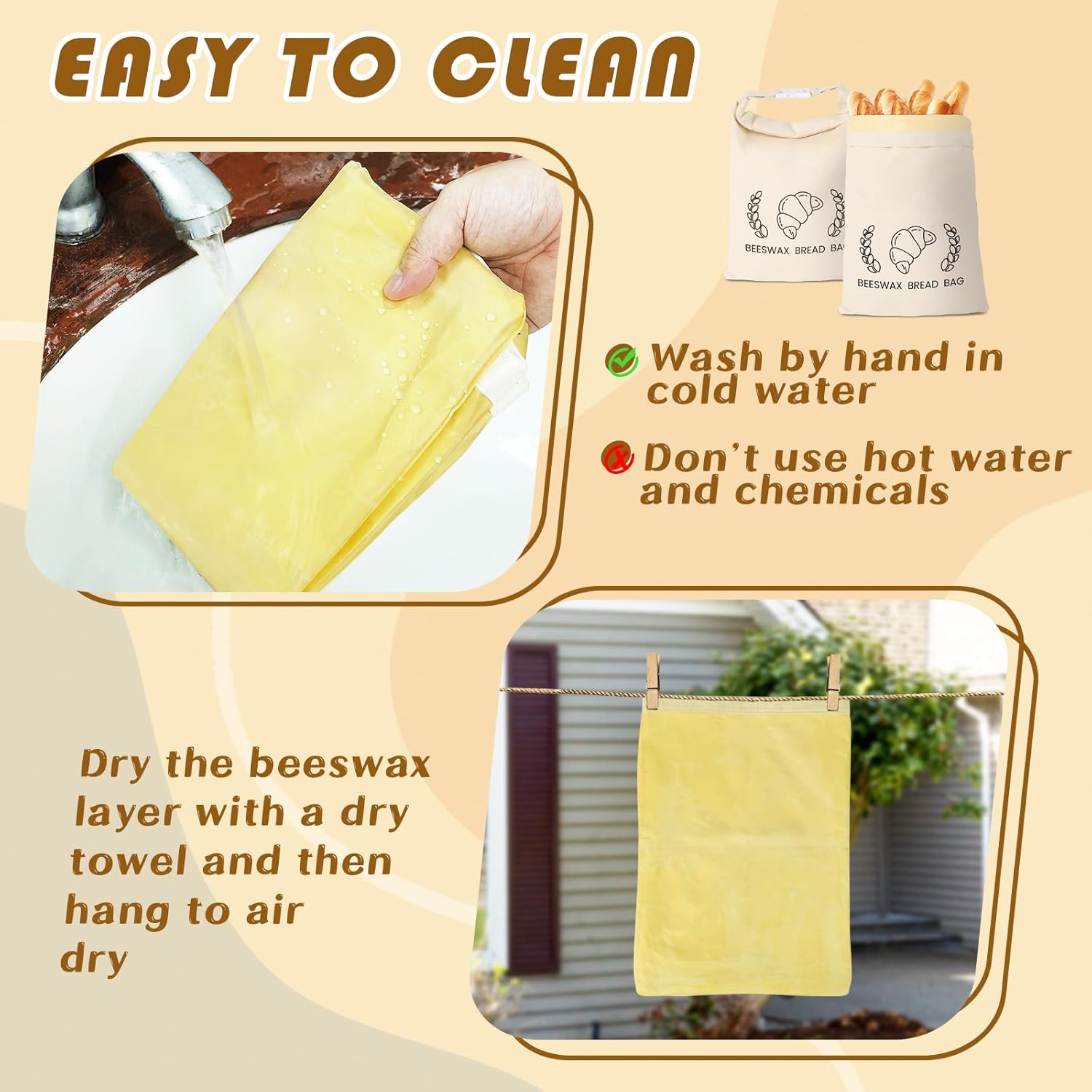 2 Pack Reusable Beeswax Bread Bag for Homemade, XL Sourdough Bread Keeper with Beeswax Lining, 17"×12" Bread Storage for Baking Supplies