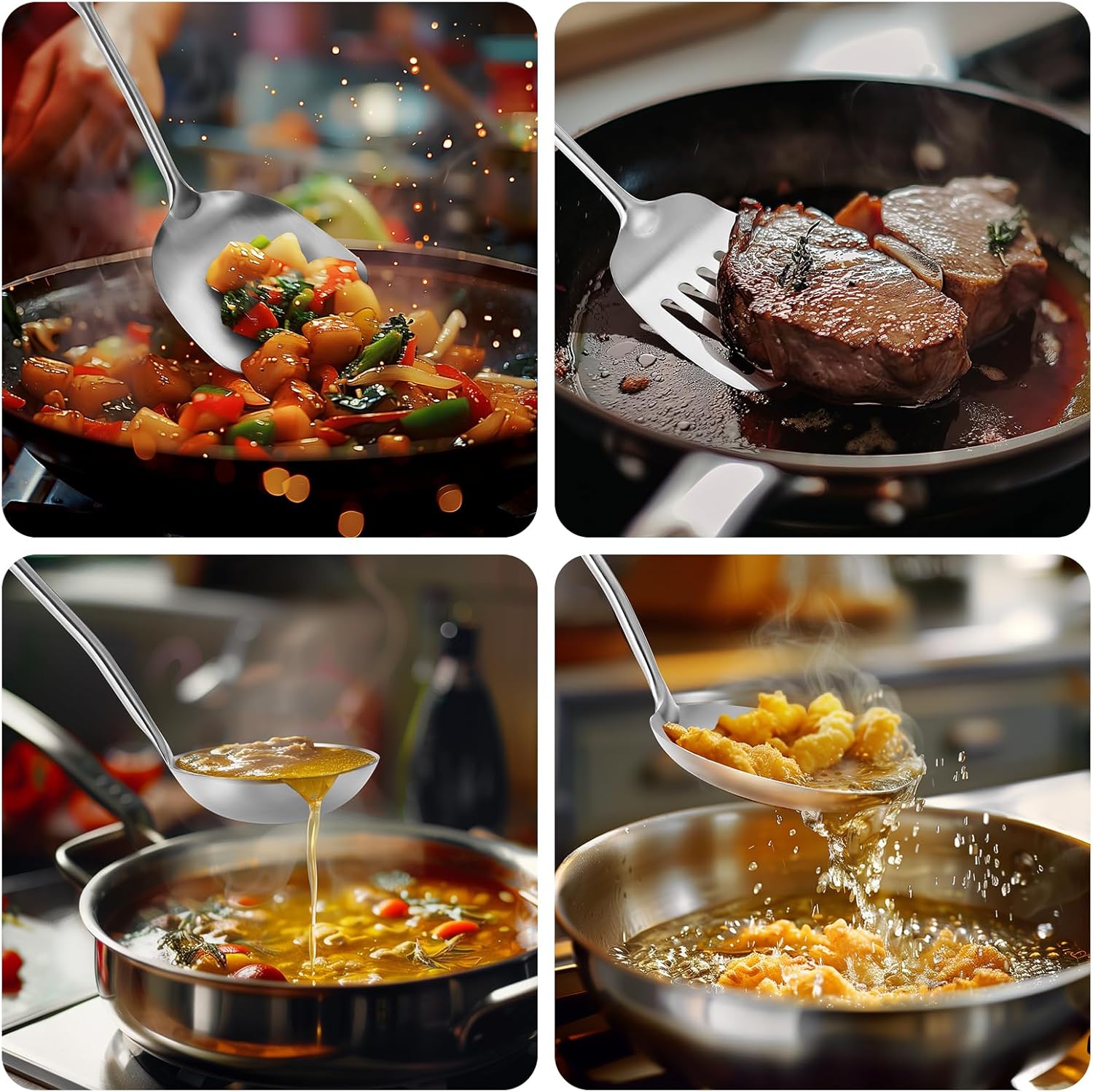 15" Wok Spatula and Ladle,Skimmer Spoon, Slotted Turner Spatula,304 Stainlss Steel Matte Kitchen Utensils Set,4PCS Wok Accessories,Cooking Utensils Tools