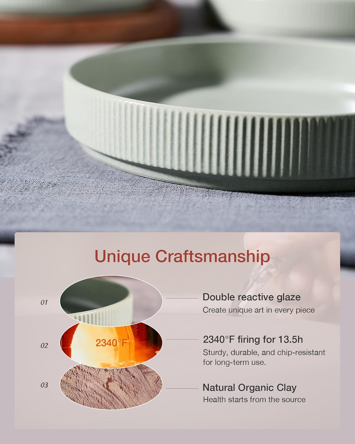 - HANDCRAFTED ELEGANCE: Each of our plate bowls is a testament to the skill and creativity of our artisans, handcrafted and glazed with a DOUBLE REACTIVE GLAZE that brings out a distinct, dreamy color. The hues may differ on your screen, showcasing the one-of-a-kind beauty of our artisanal process