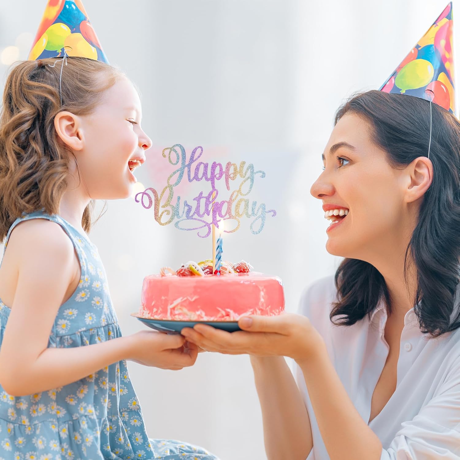 Happy Birthday Cake Toppers 9 Inch Glitter Happy Birthday Cake Pick for Birthday Anniversary Theme Party Cake Decorations Supplies - Colorful