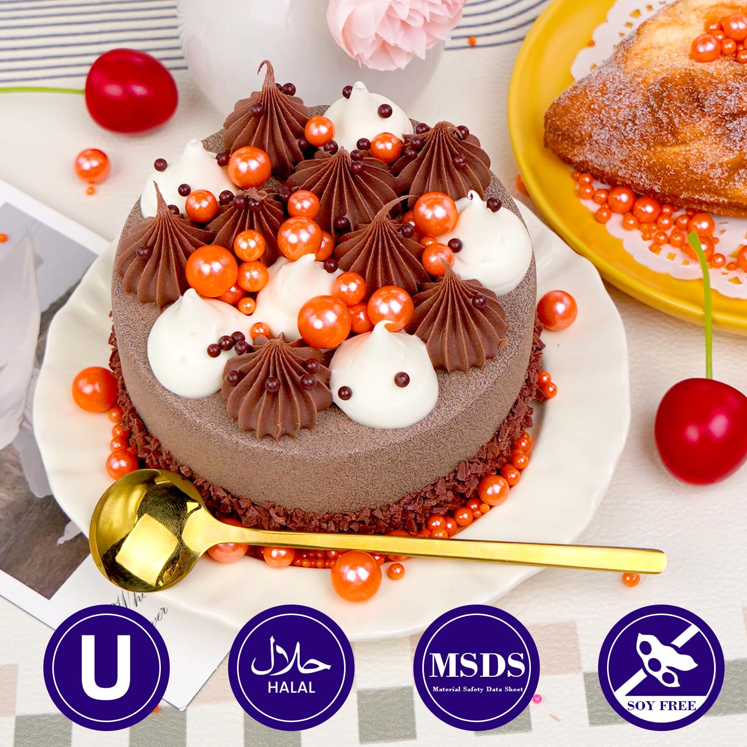 Edible Orange Pearl Sprinkles, Sugar Candy, 130g/4.58oz, Edible Orange Pearls Sprinkles for Cupcake Decorating, Cupcake Toppers, Cake Decorations