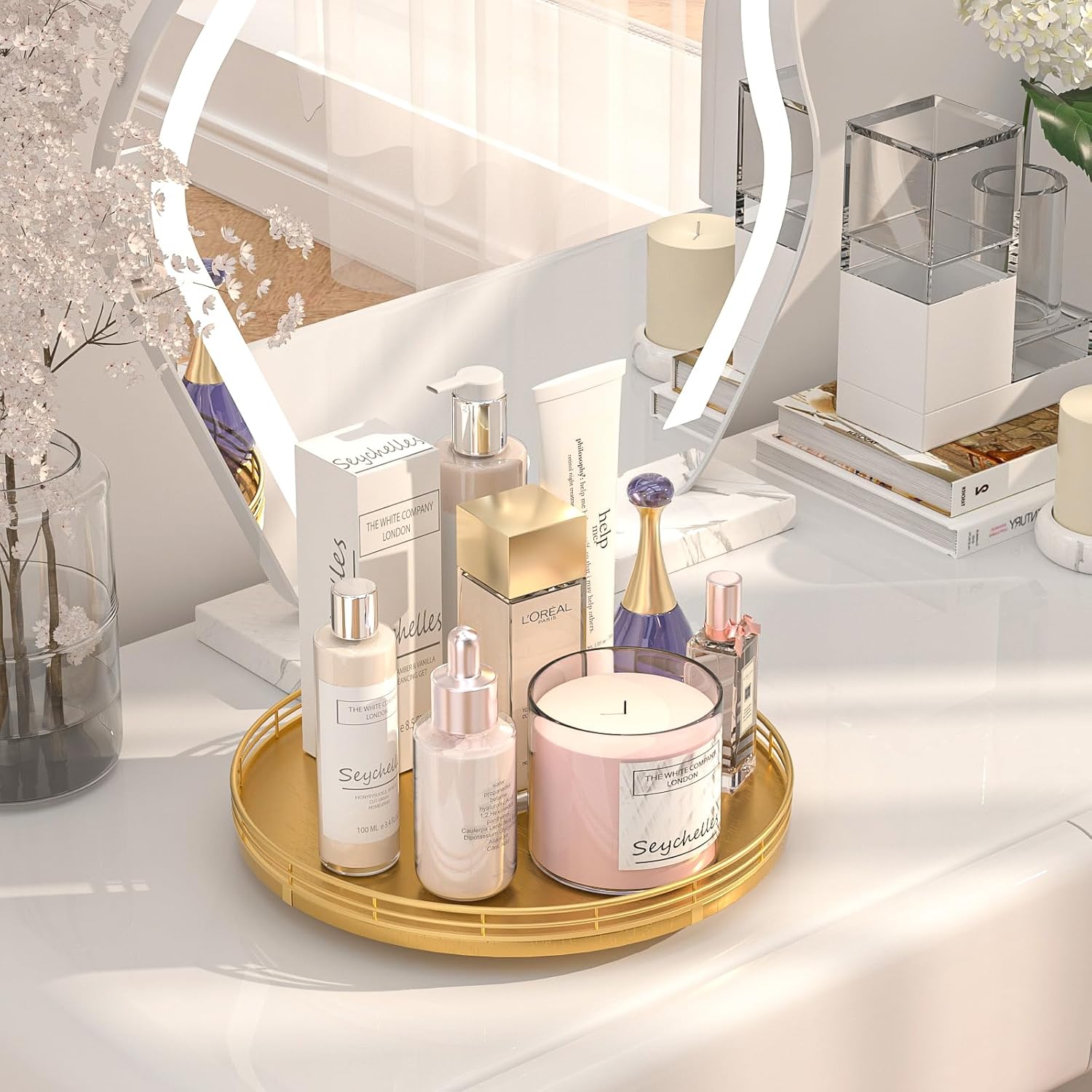 - Organizer and Beautify: This gold wooden tray provides a spacious surface to organize your favorite items, such as candles, vases, books or other decorative accents, enhancing the overall aesthetics of your home; Ideal for displaying perfume, jewelry, lipstick, sunglasses and makeup holder for dresser
