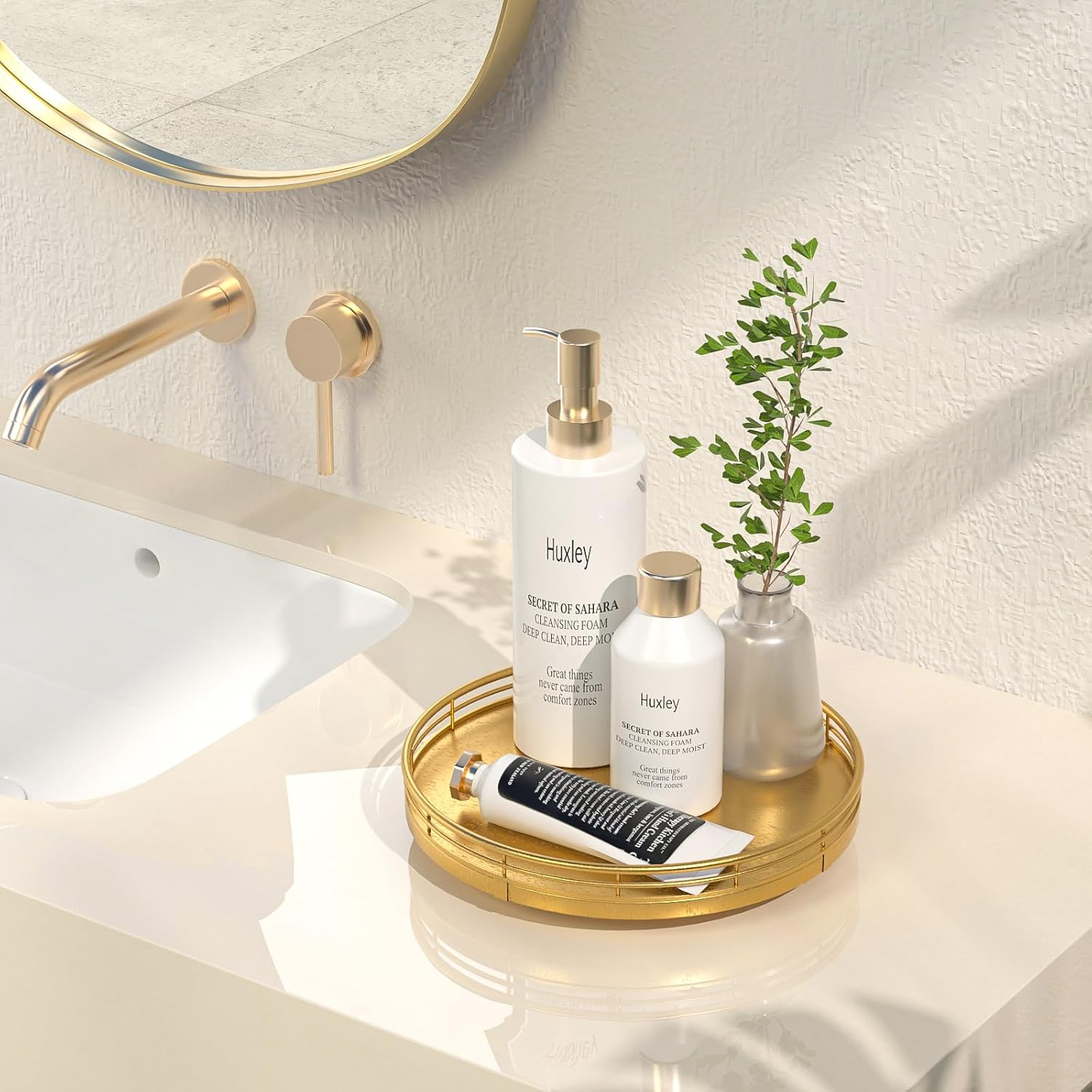 - Multi-Purpose Usage: Perfect for a wide range of occasions and spaces. Whether used as a centerpiece table decorations, a vanity tray in your bathroom, or an organizer on your kitchen, this versatile gold round tray adapts to your needs in any room