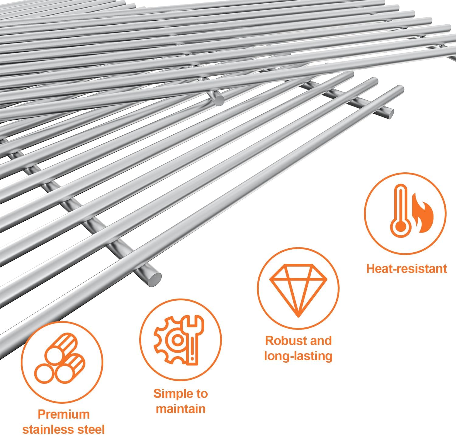 - Premium Material & Safety Assurance: Crafted from premium stainless steel, KEESHA grates resist rust while ensuring uniform heating and exceptional corrosion resistance. Their edge-grinding design eliminates sharp edges, featuring smooth surfaces and precision welds for complete hand safety during use. Their robust construction withstands high temperatures and frequent use without warping or degradation.