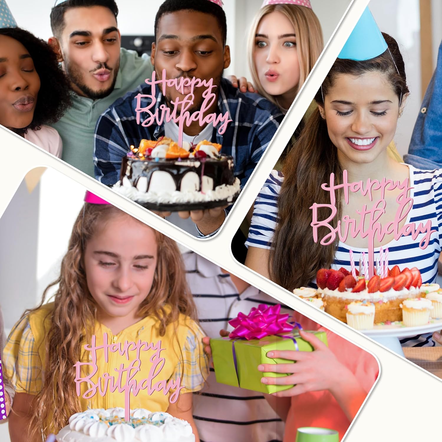 - High Quality Material: This pink happy birthday cake topper is made of food-grade acrylic for durability. It is resistant to fading, bending and moisture, and maintains its luxurious gold finish even after repeated use.