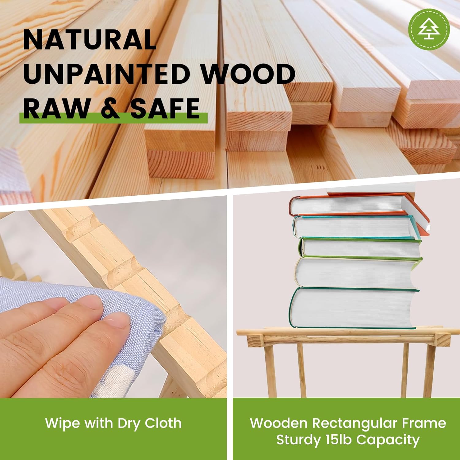 - Natural Wooden Material: Crafted from high quality natural pine wood - more friendly than plastic racks and lighter than metal racks. Features unfinished surfaces that showcase authentic wood grain and natural hues, developing rustic charm over time