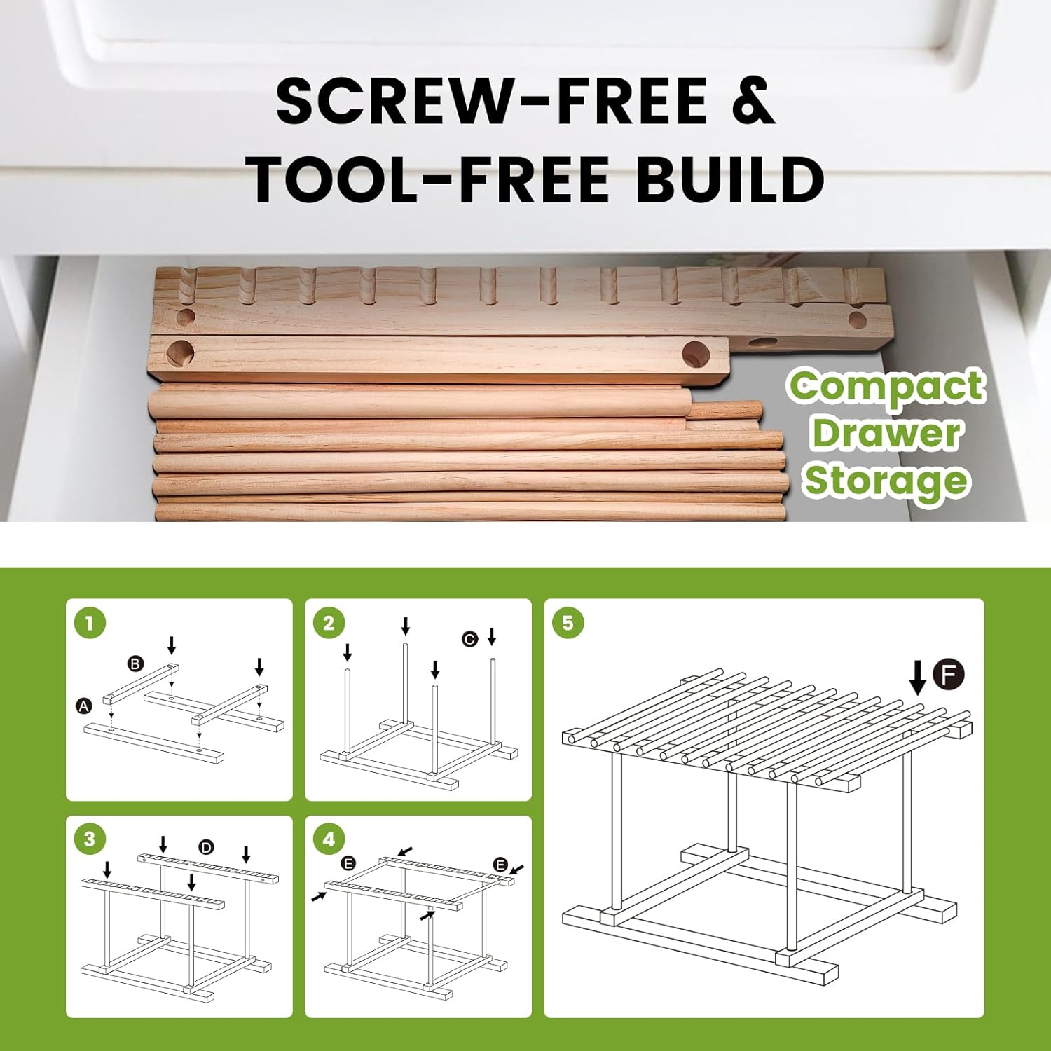 - Sturdy Construction & Tool-Free Setup: Rectangular frame (15.7"L x 11.8"W x 11.8"H) supports stable drying. Assemble in minutes by plugging rods into pre-drilled holes - no tools or screws required. Disassembles flat for drawer storage