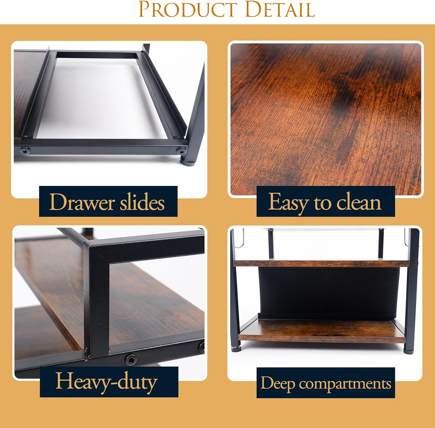 - New features: Our liquor bottle rack features a hidden fabric drawer on the side and a small bottle storage compartment at the bottom, making your coffee rack more tidy and aesthetically pleasing.