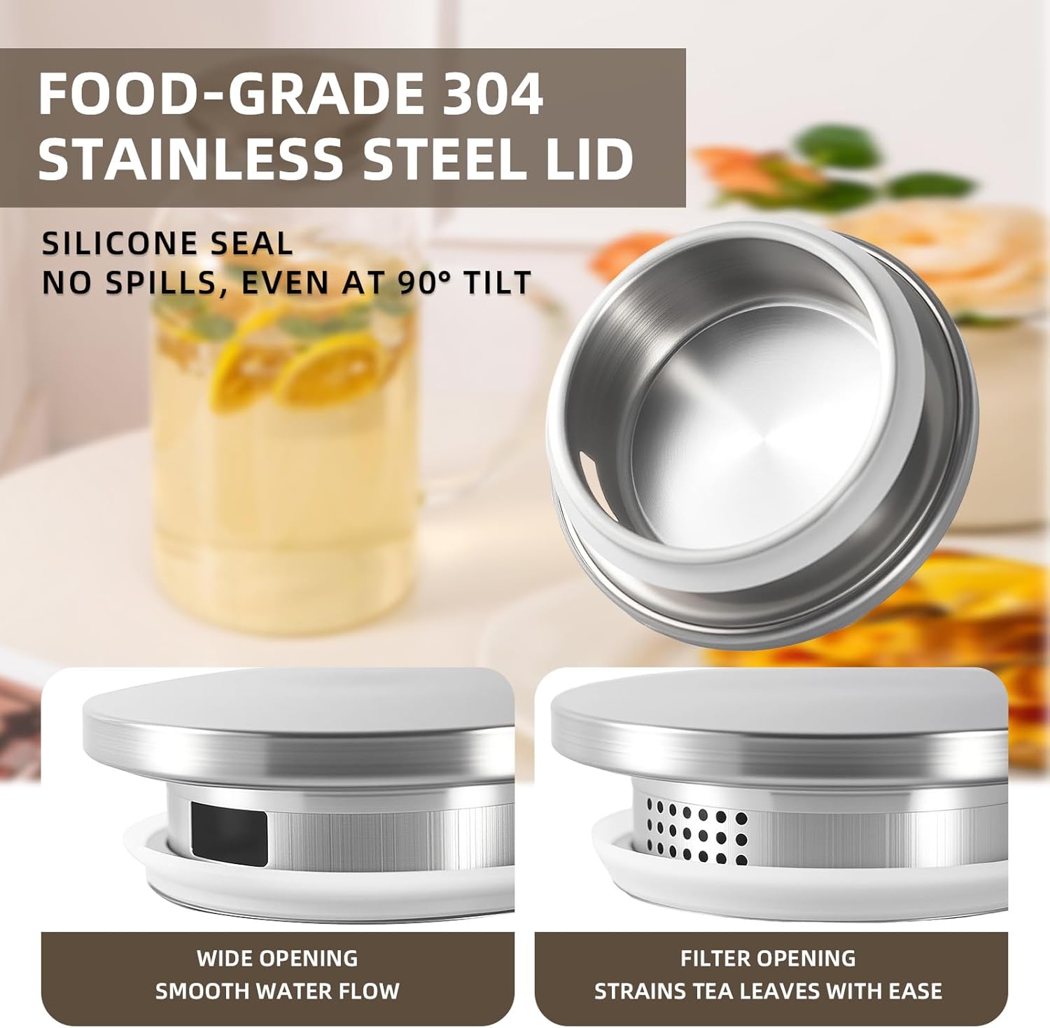 - Functional rust-proof stainless-steel lid: 304 stainless steel lid features 2-way outlets with large holes and small holes for filtration. Itβs quite multi-functional for family use. The food-grade rubber ring makes sure the lid is tight and does not fall off while pouring.