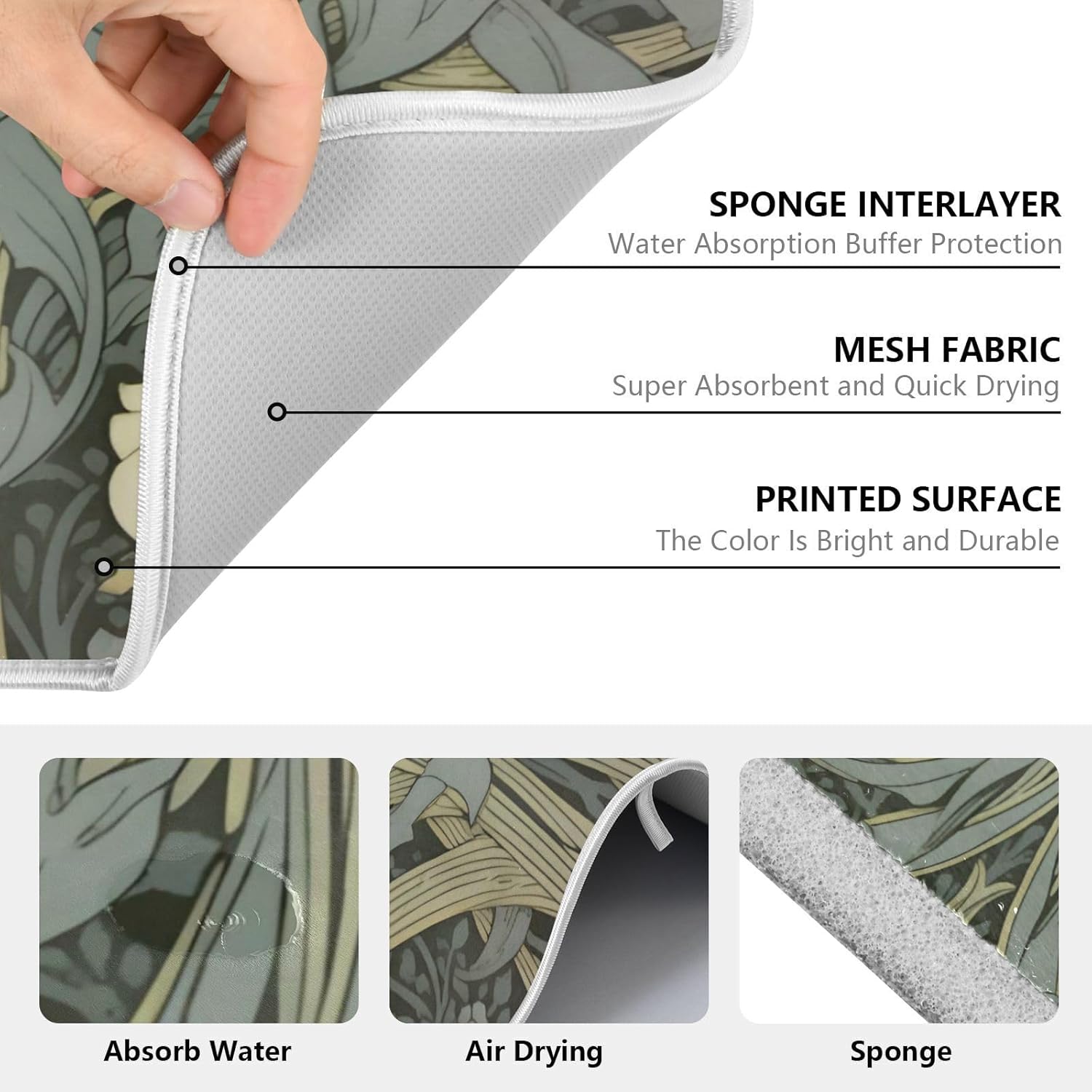 William Morris Flowers Print Dish Drying Mat for Kitchen Counter Absorbent Microfiber Small Drying Pad Dish mats for Kitchen Countertops 16 x 18 Inch