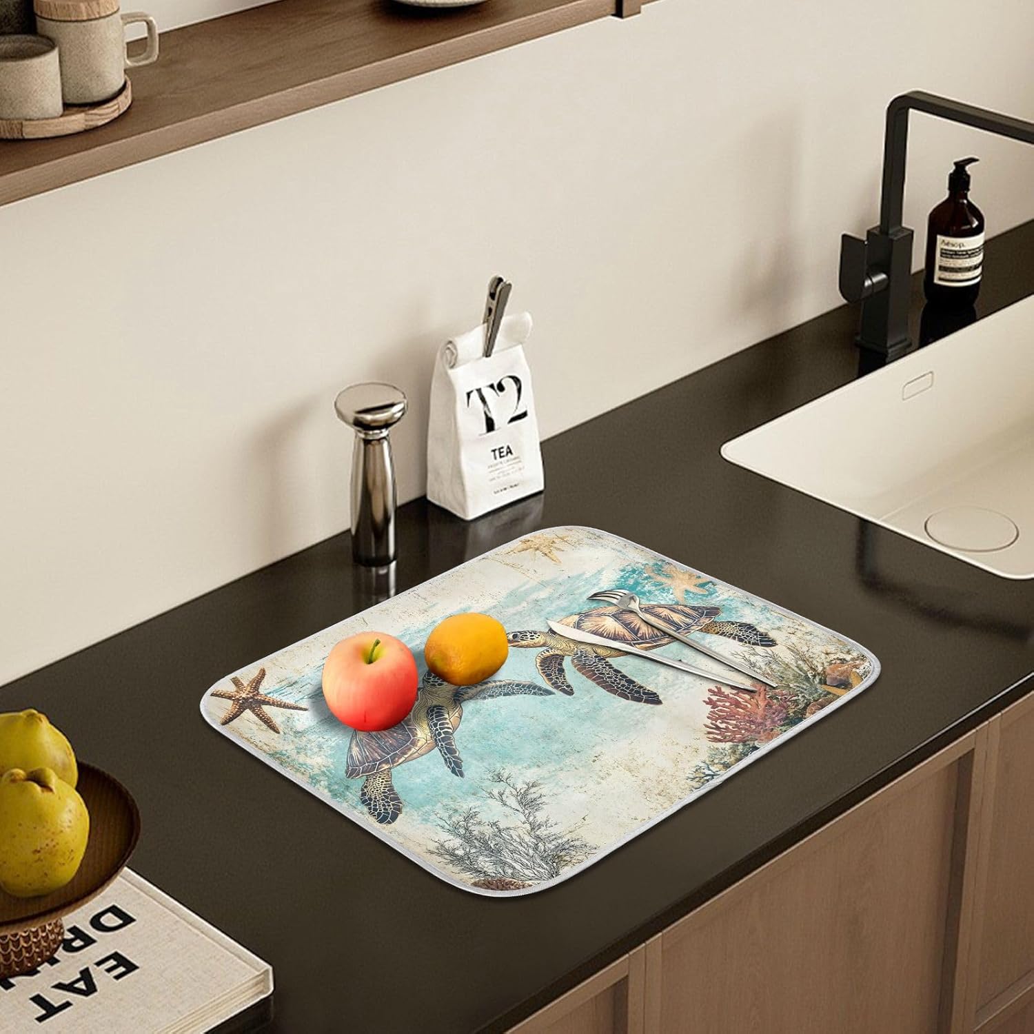 Vintage Ocean Sea Turtle04 Dish Drying Mat for Kitchen Counter Absorbent Microfiber Large Drying Pad Dish mats for Kitchen Countertops 18 x 24 Inch