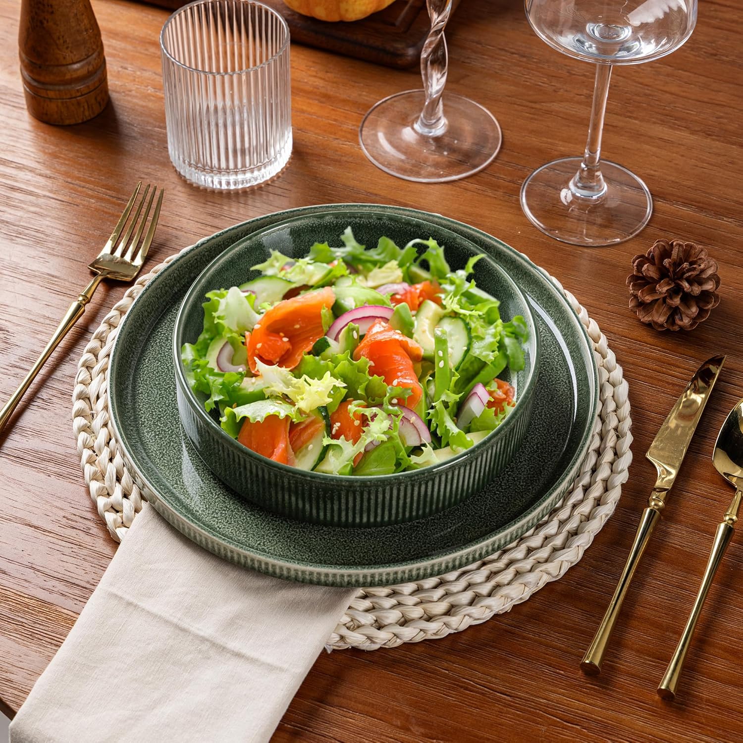 - Healthy, Lead-Free & Chip-Resistant: Crafted from premium, double-fired ceramic, this dinnerware is lead-free and cadmium-free, ensuring no harmful chemicals leach into your food. The durable stoneware construction makes it exceptionally chip-resistant and built for long-lasting daily use.