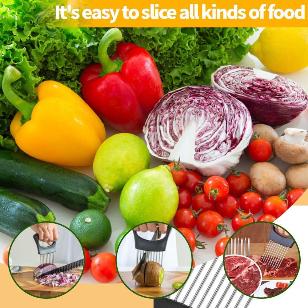 - 【Time-Saving Design】Make food prep faster with our onion holder slicer that helps guide your knife for uniform cuts and prevents slipping or uneven slicing.
