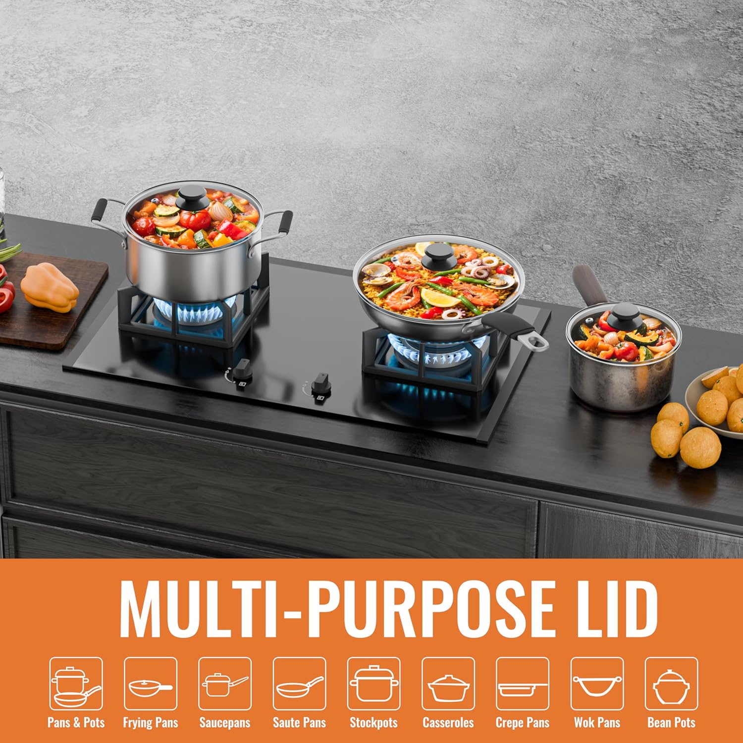 - PREMIUM HD TEMPERED GLASS: With high-definition tempered glass, our durable glass lid for pots and pans ensures even heat distribution and withstands high temperatures. Perfect for pots and pans, it offers a clear view of your cooking without lifting.