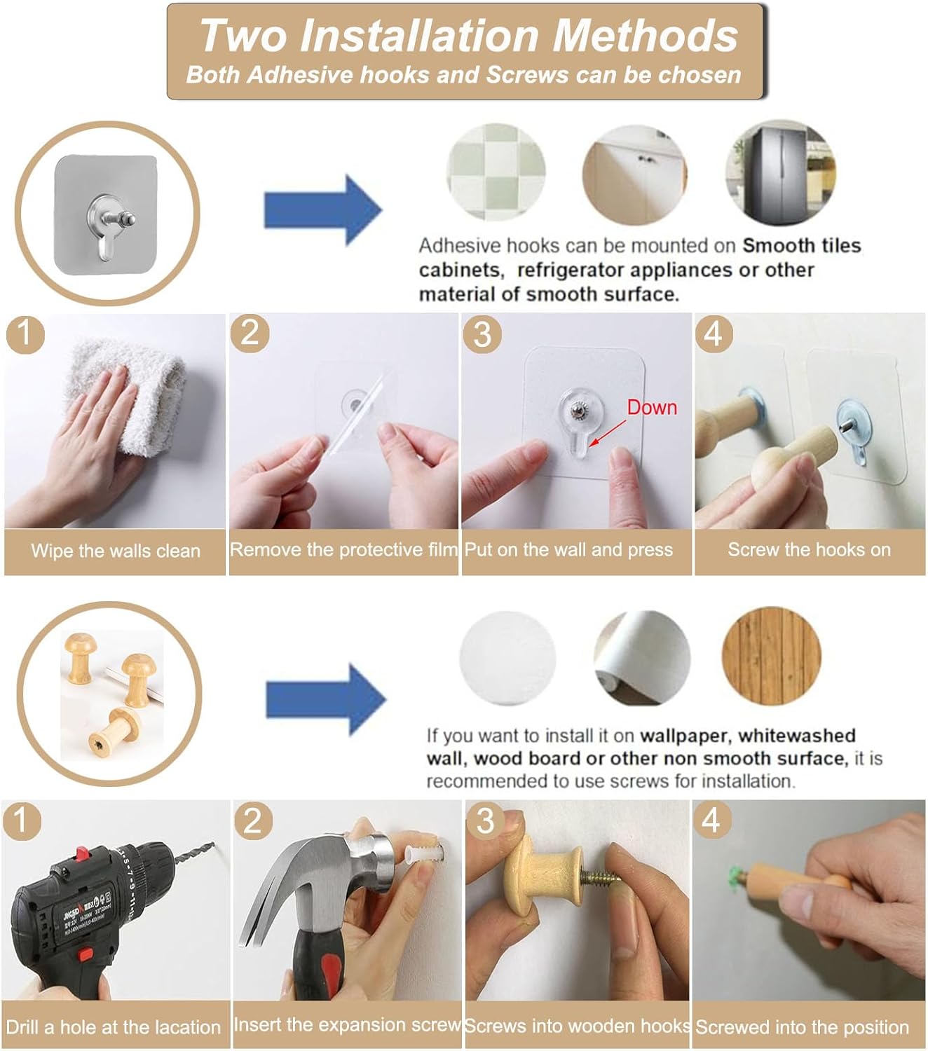 - Easy Installation: The product provides 3 pcs strong No-Punch screw stickers and 3 pcs Bohemian-style wooden hooks for free. With two installation methods, it provides you with more usage scenarios and also makes the fruit basket look more beautiful and practical