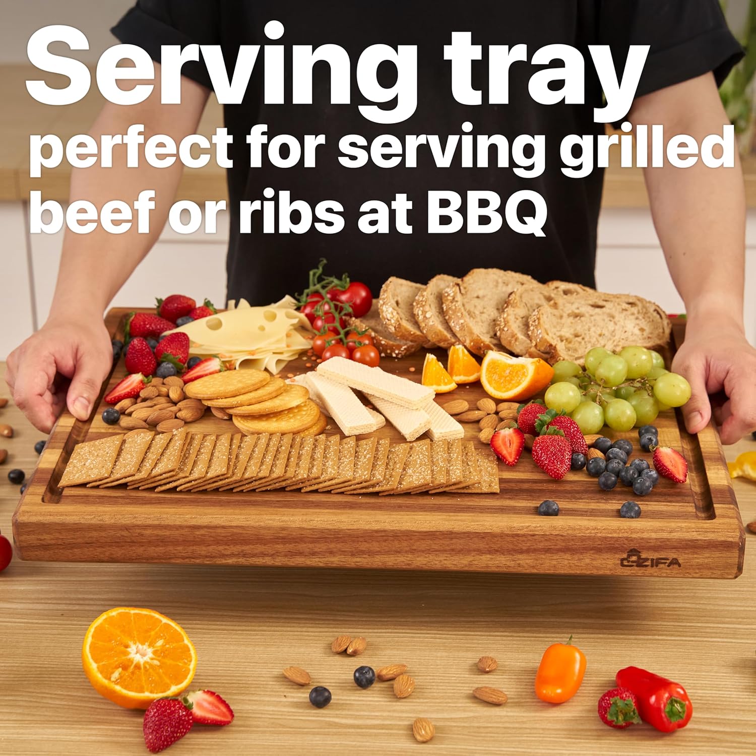 COZIFA- Large Cutting Board Wood Acacia - Thick Wooden Cutting Boards for Kitchen - Wooden Chopping Boards for Kitchen with Juice Groove, Inner Handle, Natural Oil Wax Finish - 17x12 x1.2inches