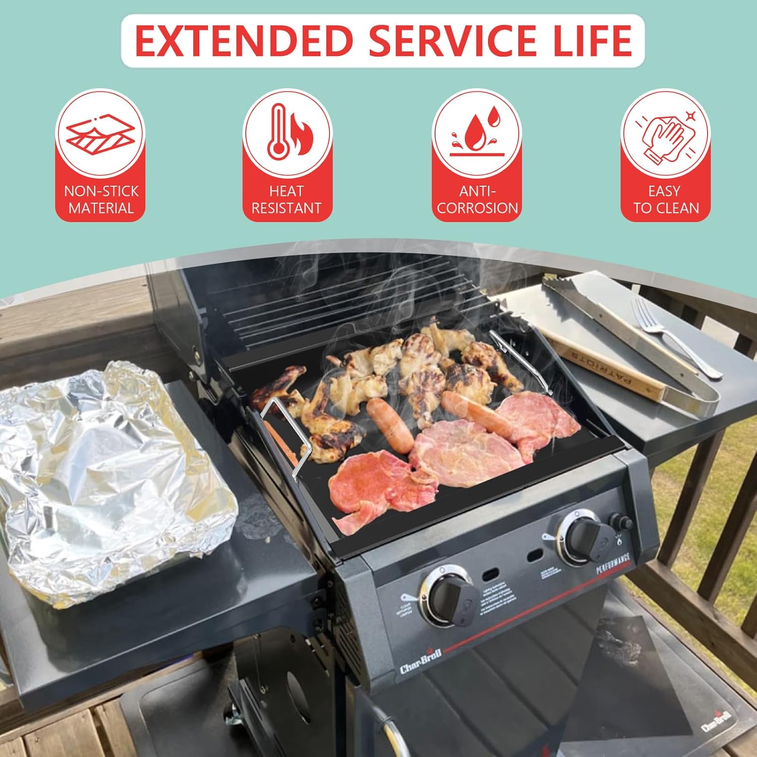 - Great for Various Setups: Griddle insert for gas grill easy to install and operate. Strategically designed raised edges. These raised barriers provide reliable protection to hold ingredients securely on the cooking surface. No more worrying about vegetables rolling off during a quick sauté or sauce spilling over the surface when searing a steak!