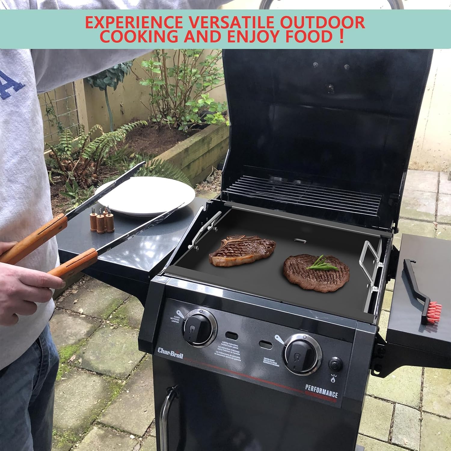- Versatility: Experience versatile outdoor cooking and enjoy the benefits of a true flat griddle on your outdoor gas grill. A culinary powerhouse that revolutionizes your cooking experience both indoors and outdoors. perfect for sizzling crispy bacon, grilling juicy burgers and savory hot dogs, or even steaming and stir-frying multiple dishes simultaneously—no more waiting around for your meals!