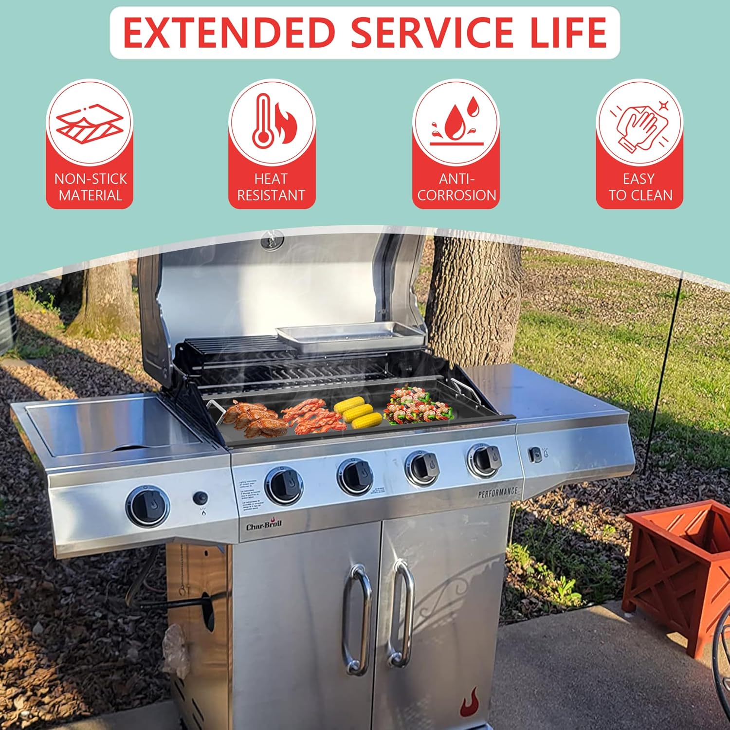 - Versatility: Experience versatile outdoor cooking and enjoy the benefits of a true flat griddle on your outdoor propane gas grill. A culinary powerhouse that revolutionizes your cooking experience both indoors and outdoors. perfect for sizzling crispy bacon, grilling juicy burgers and savory hot dogs, or even steaming and stir-frying multiple dishes simultaneously—no more waiting around for your meals!