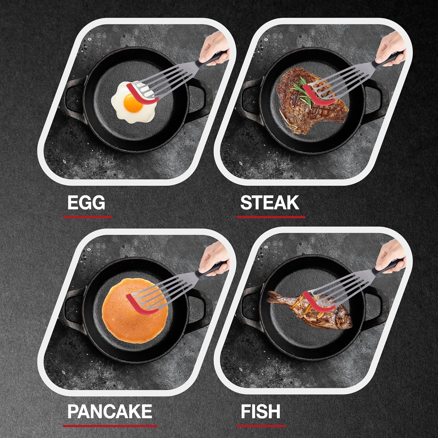 - ERGONOMIC HANDLE FOR COMFORTABLE GRIP: The handle of slotted spatulas is designed to fit comfortably in your hand, giving you a non-slip grip to easily flip delicate foods like fish and eggs. It helps reduce hand strain, even when cooking for longer periods, giving you full control and comfort throughout your cooking.