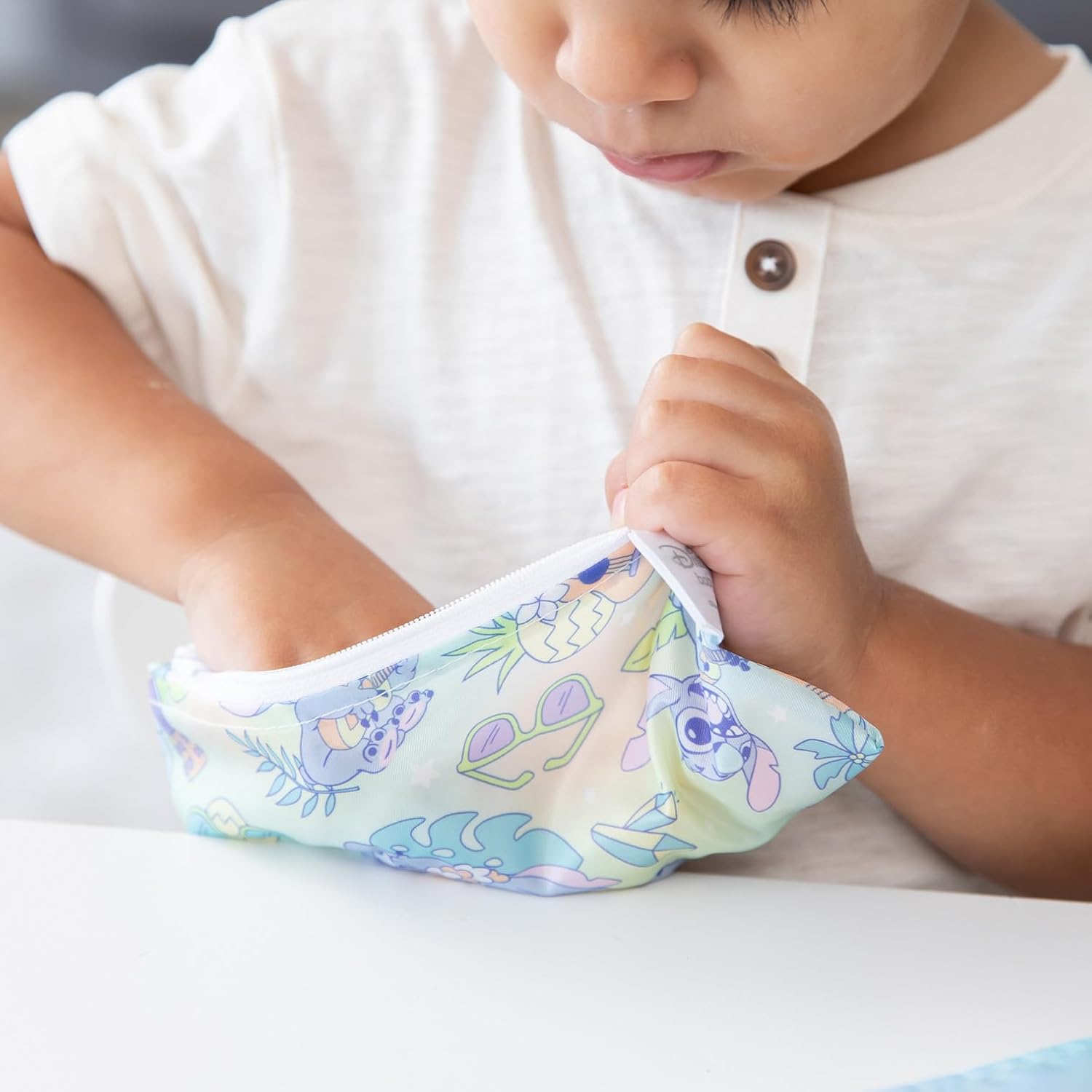 Bumkins Reusable Sandwich and Snack Bags, for Kids School Lunch and for Adults Portion, Washable Fabric, Waterproof Cloth Zip Bag, Travel Pouch, Food-Safe Storage, 4-pack Set Disney Stitch