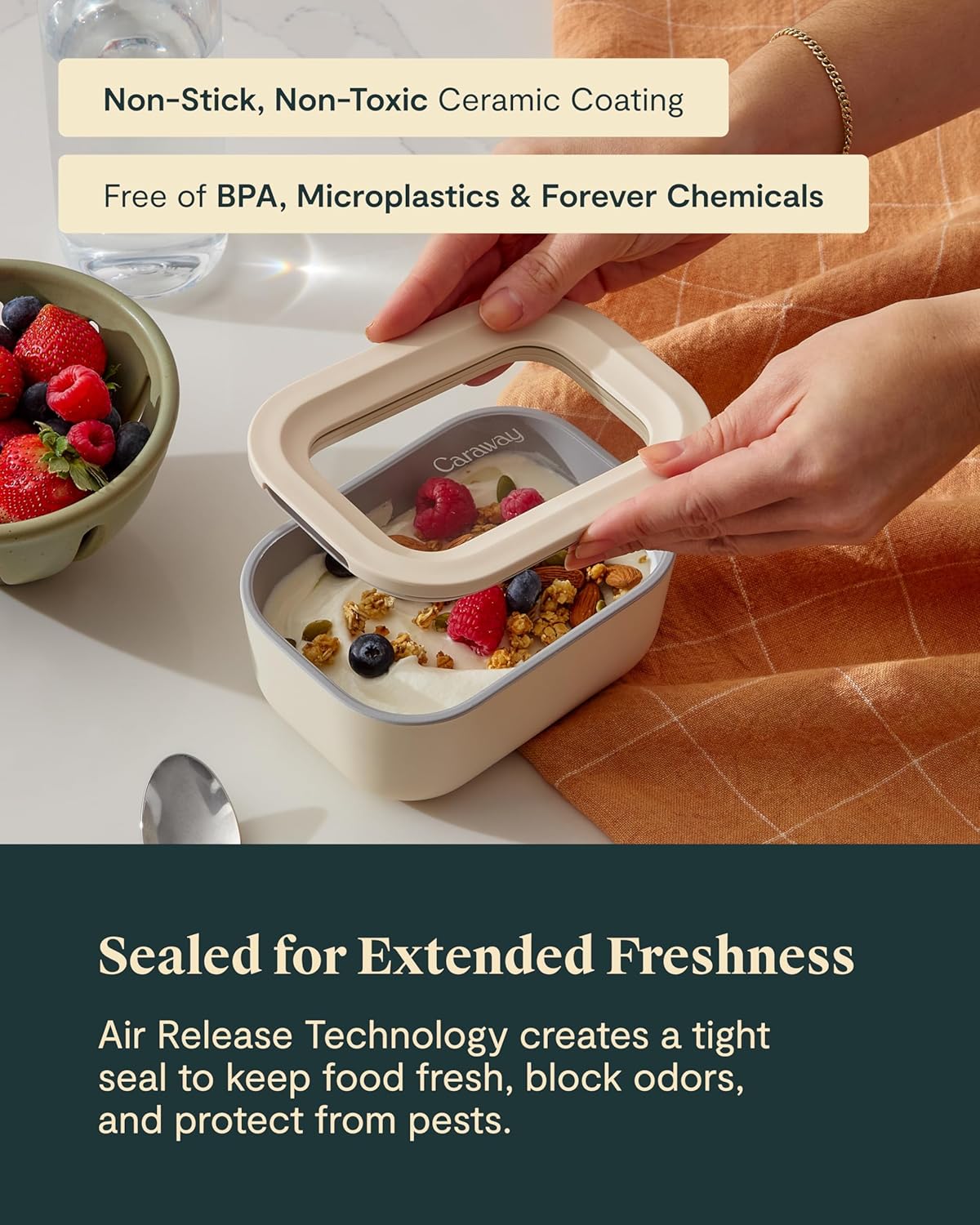 - NON-TOXIC & ECO-FRIENDLY MATERIALS: With a ceramic-coated surface, these containers are free from BPA, PFAS, and other harmful chemicals, ensuring safe and sustainable food storage.