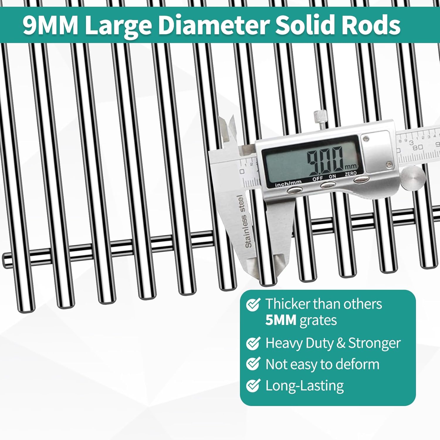 - 【9MM Diameter Solid Rods】Thickness of Meyafiny cooking grate is 9MM, more thicker and stronger than other 5mm/ 7mm grill grates. Our barbecue cooking grates feature SUS304 thicken solid rod bars, which are not easy to deform and more durable for long time using.