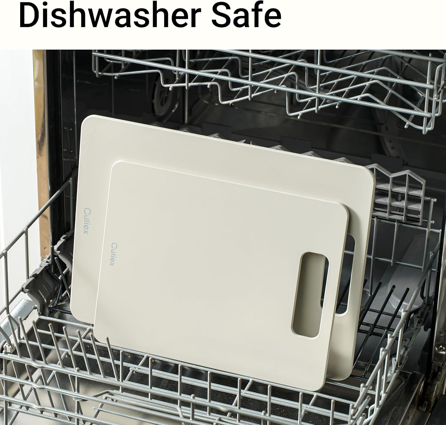 - Double-Sided Use & No Sharp Corners: Each cutting board can be used on both sides, enhancing its lifespan and functionality. The soft edge transition also helps protect both your hands and your dishwasher from damage.