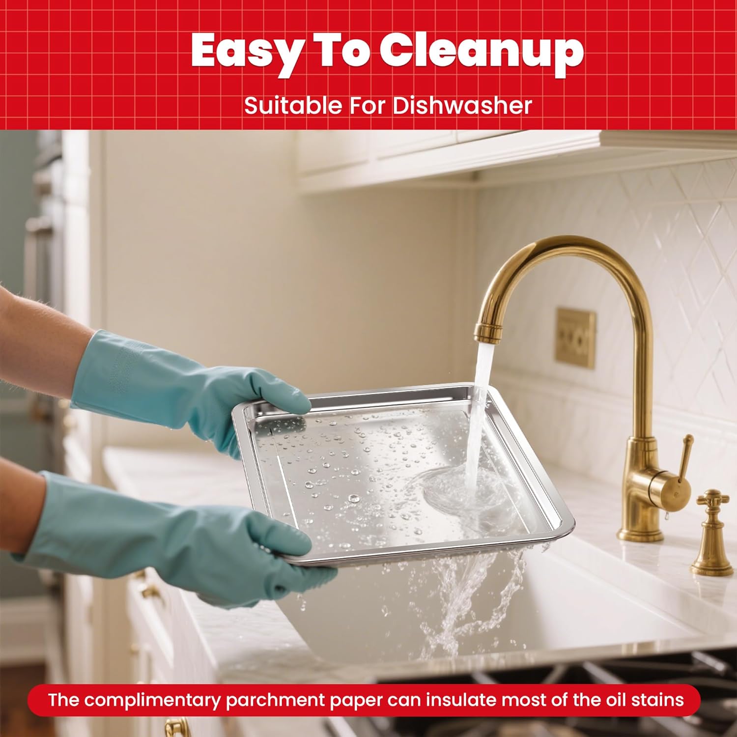 Air Fryer Basket for Oven,Ease Of Cleaning,Air Fryer Basket and Stainless Steel Baking Tray Pant Oven with 50 Sheets Parchment Papers,Air Fryer Pan Rack for Cooking Baking Dishwasher (2 Set M+L)