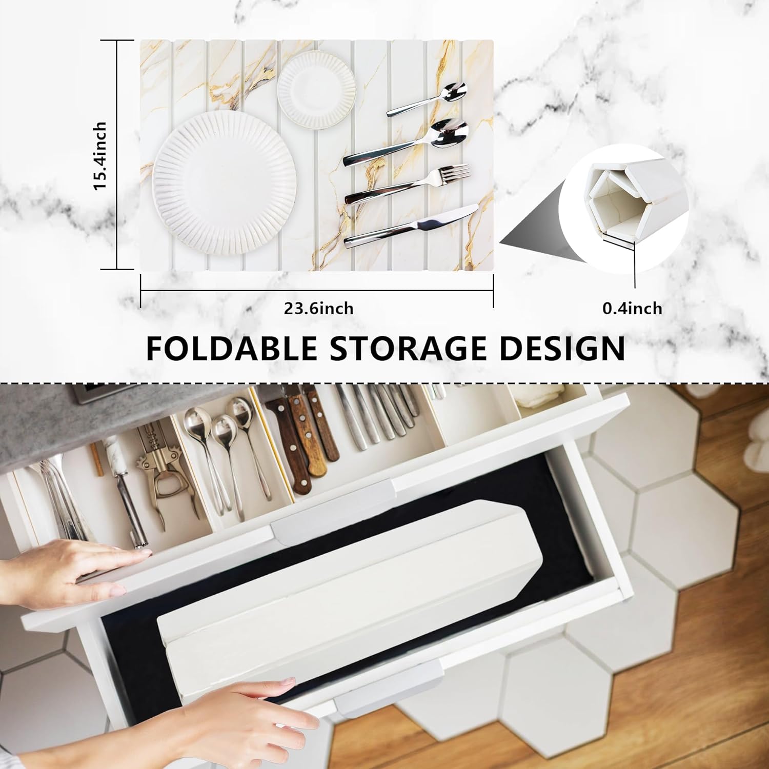 Large Stone Drying Mat for Kitchen Counter Diatomaceous Earth Collapsible 24”(L)*16”(W)Super Heat Resistant Mats, Quick Absorbent Dish Drying Rack(Gold marble)