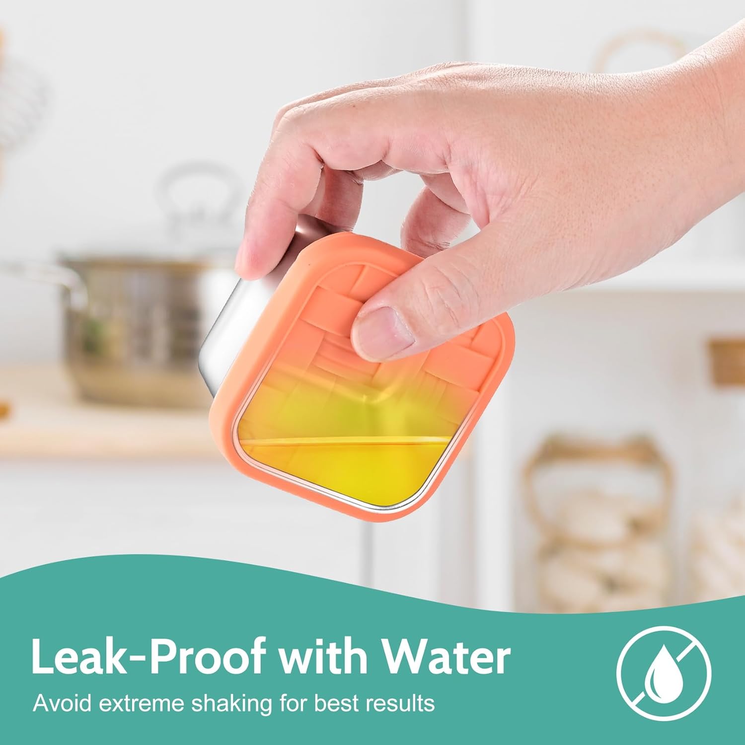 - â ăLeakproof & Easy to UseăDesigned for kids, the flexible silicone lids are easy to open and close while keeping food fresh and preventing leaks. The lids also double as mini coasters, even for hot snacks. Stackable design saves space in your kitchen or lunch bag.