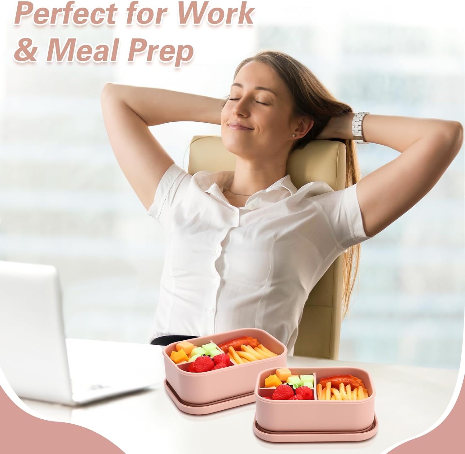 - Lightweight and Stackable: easy to carry in lunch bags or backpacks; These silicone lunch box containers stack neatly in refrigerators or cabinets, making storage and space-saving