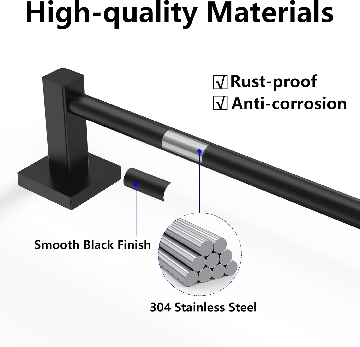 Adjustable Towel Bar, 14.4inch - 25.2inch Towel Rack, Wall Mounted for Bathroom, Kitchen Hand Towel Holder Cloths Hanger SUS 304 Stainless Steel Organizer Single Bar (Matte Black)
