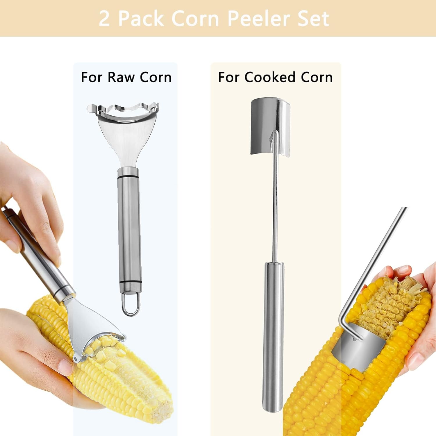 - 【Two Tools for Raw & Cooked Corn】 This set includes a long-handle corn peeler for cooked corn and a short-handle peeler for raw corn, giving you the right tool for every occasion — from quick meals to detailed prep