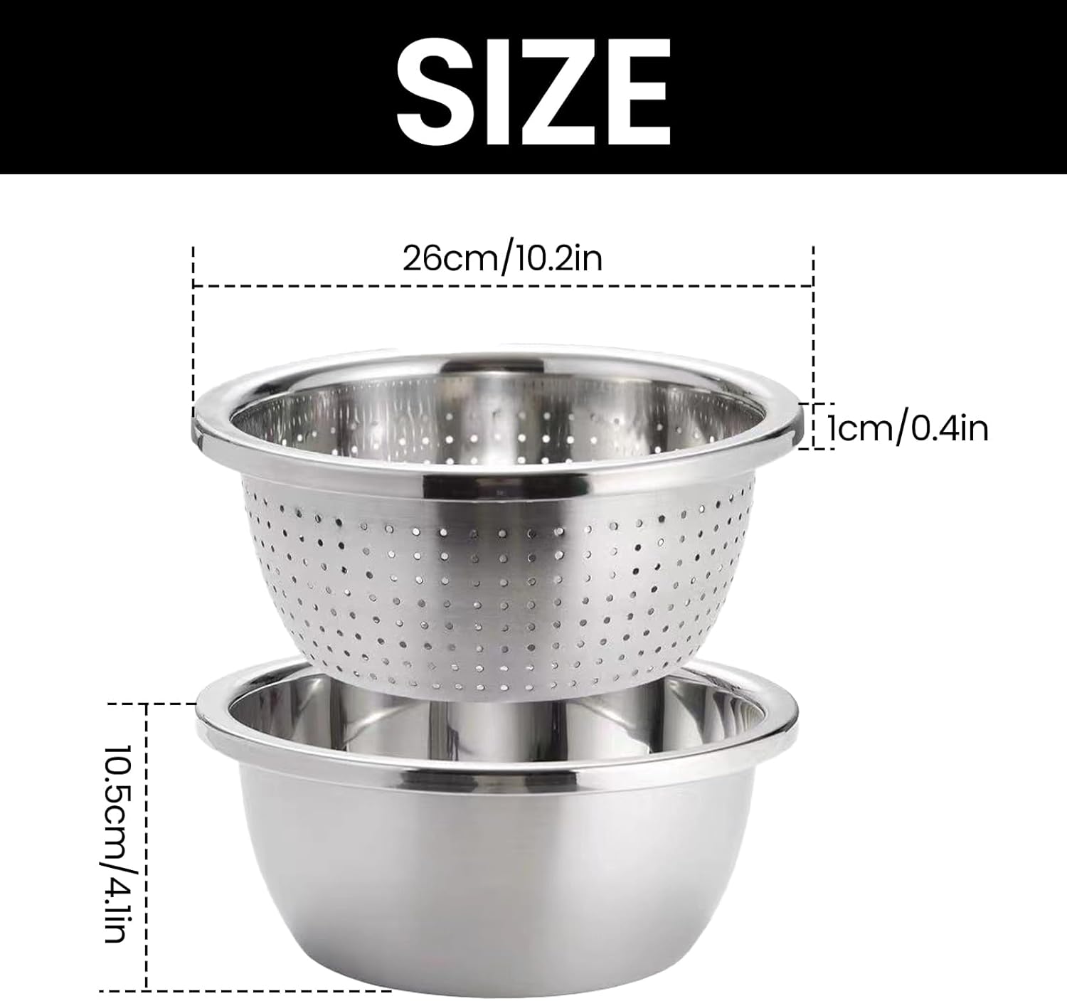 - 2-in-1 Versatile Design: Includes a fine-hole colander and a deep mixing bowl. Perfect for washing, straining, mixing, or marinating—your all-in-one kitchen solution.