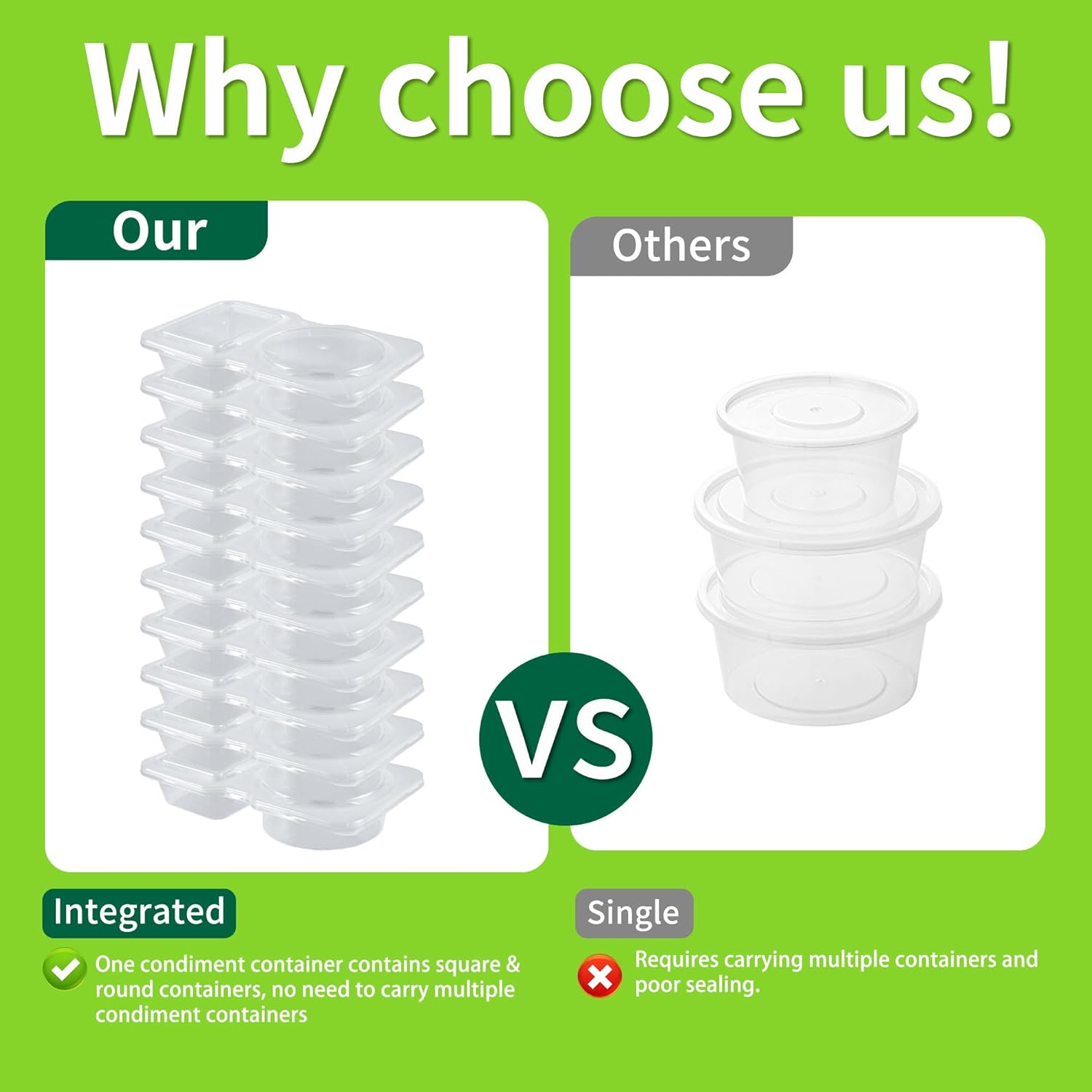 - Various Uses: These reusable snack containers with lids are nice for many uses--- ketchup, road trip snacks, Veggies, dip or (dry) fruit, crackers, oil or mayo, vinegar, etc. It can be used as a portion food measuring, for leftover storage, and it's a nice condiment for easy storage in the refrigerator. So that you can easily portion snacks in the refrigerator for an easy grip