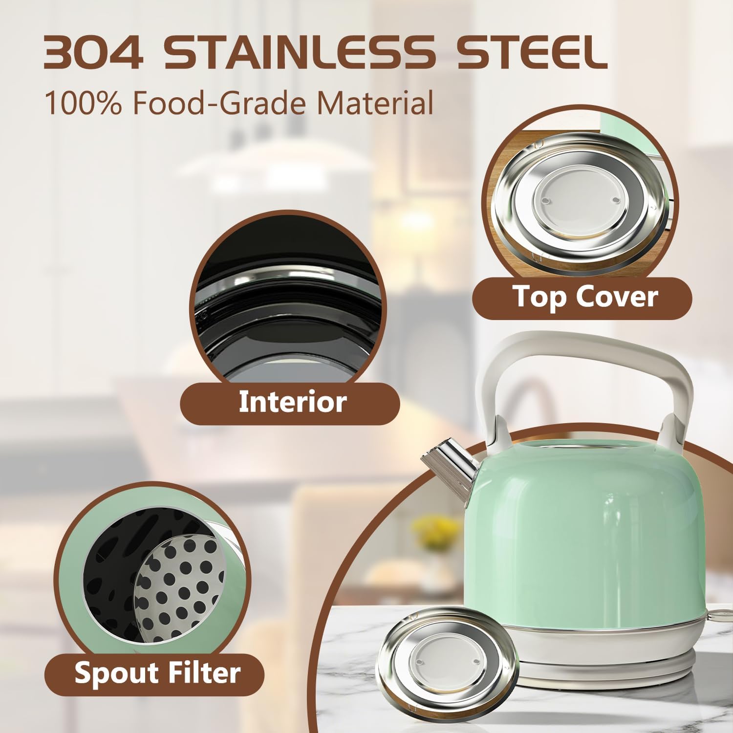 - 🫖CONTEMPORARY RETRO DESIGN || The electric tea kettle's exterior features a fresh green piano lacquer finish that is both wear-resistant and scratch-resistant, with vibrant colors that are not only stylish for decoration but also practical. The silver-plated waistline electric kettles for boiling water adds a touch of luxury and fun to your life.