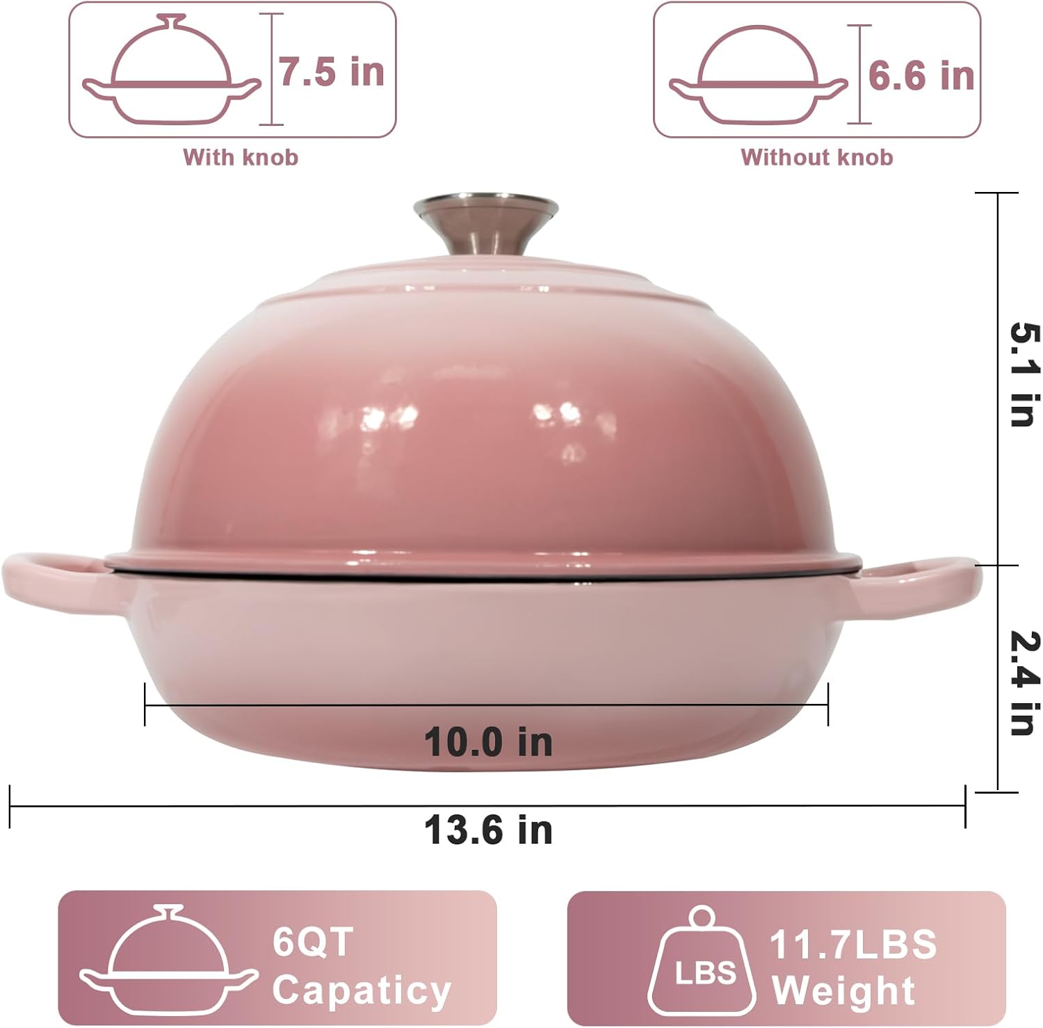 - GET A CRISPY BREAD CRUST EVERY TIME: Engineered for even heat distribution, our triple-layer enamel coating ensures a crispy golden crust and tender crumb. The dome lid‌ locks in steam circulation—ideal for sourdough, whole-grain, and rustic boules.