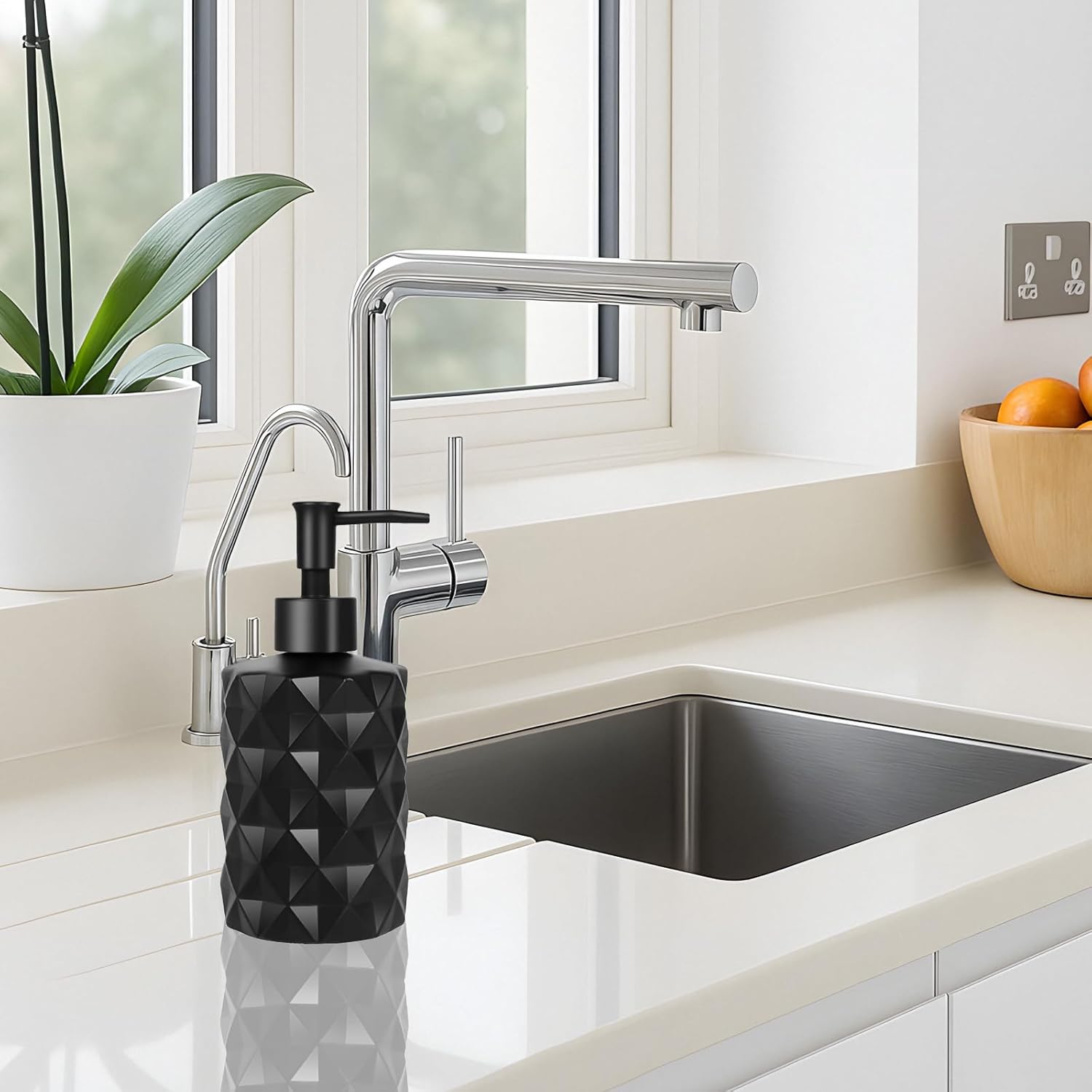- Unique Design: Equally elegant and functional, black glass soap dispenser featuring small diamond pattern, lovely way to adds a unique style, which make it look beautiful and stylish.
