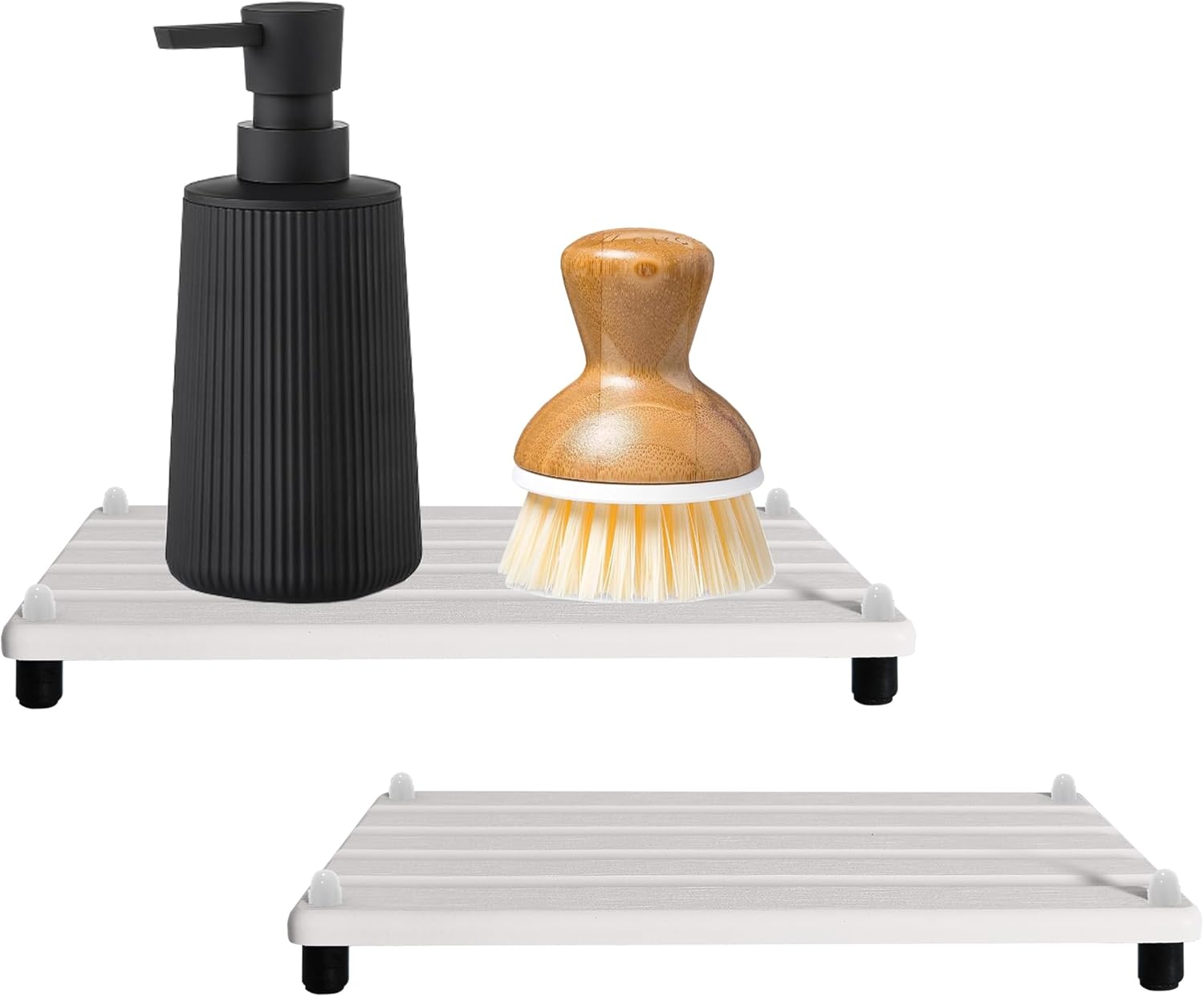 - 【Fine Workmanship】The sink tray features four straight grooves carved with a spherical knife, which enables rapid drainage of water and accelerates evaporation. The equipped anti-slip Feet can stabilize the tray and elevate it to enhance air circulation, accelerate moisture evaporation, and maintain the tray’s condition over time.