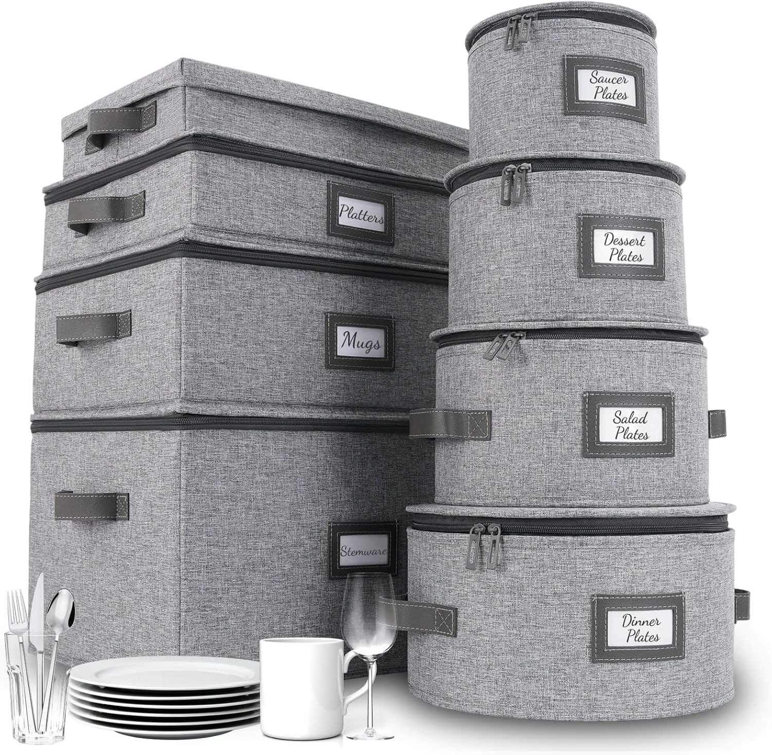 - Versatile China Storage: Homelux Theory's UPGRADED Light Gray Dinner Plate Storage Containers have a multipurpose design with wide-ranging applications, making them highly suitable as china plate storage, dishes storage, flatware storage, platter storage, or dishes packing box for inherited heirlooms and chinawares. These plates storage are the most ideal dish storage box with handles as it protects your precious plates & mugs keeping them safe during your travel.