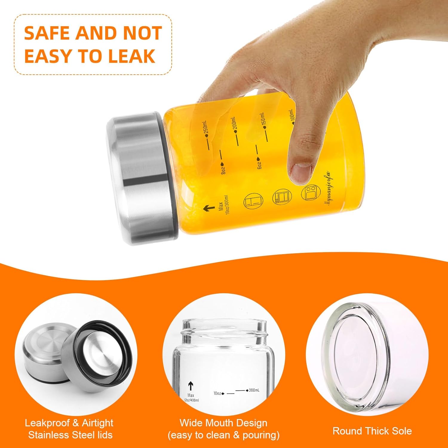 ![Glass Juice Bottles 4 Pack 10 oz - Wide Mouth Glass Water Bottles with Lids - for Juicing, Smoothies, Milk, Protein, BPA Free, Reusable, Stainless Steel Lids, Leak Proof, Shaker bottle [10oz/300ml]](http://kitchoraus.com/cdn/shop/files/81NEkFAahzL._AC_SL1500.jpg?v=1763017642&width=1445)