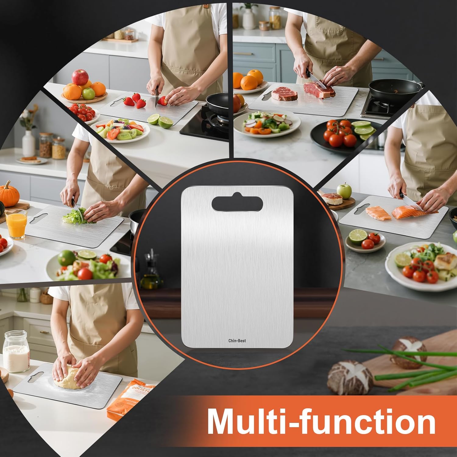 - 【Use Indoor And Out Door 】This titanium cutting board is very light and portable,can be used in tight space kitchen at home or outdoor camping,or travel