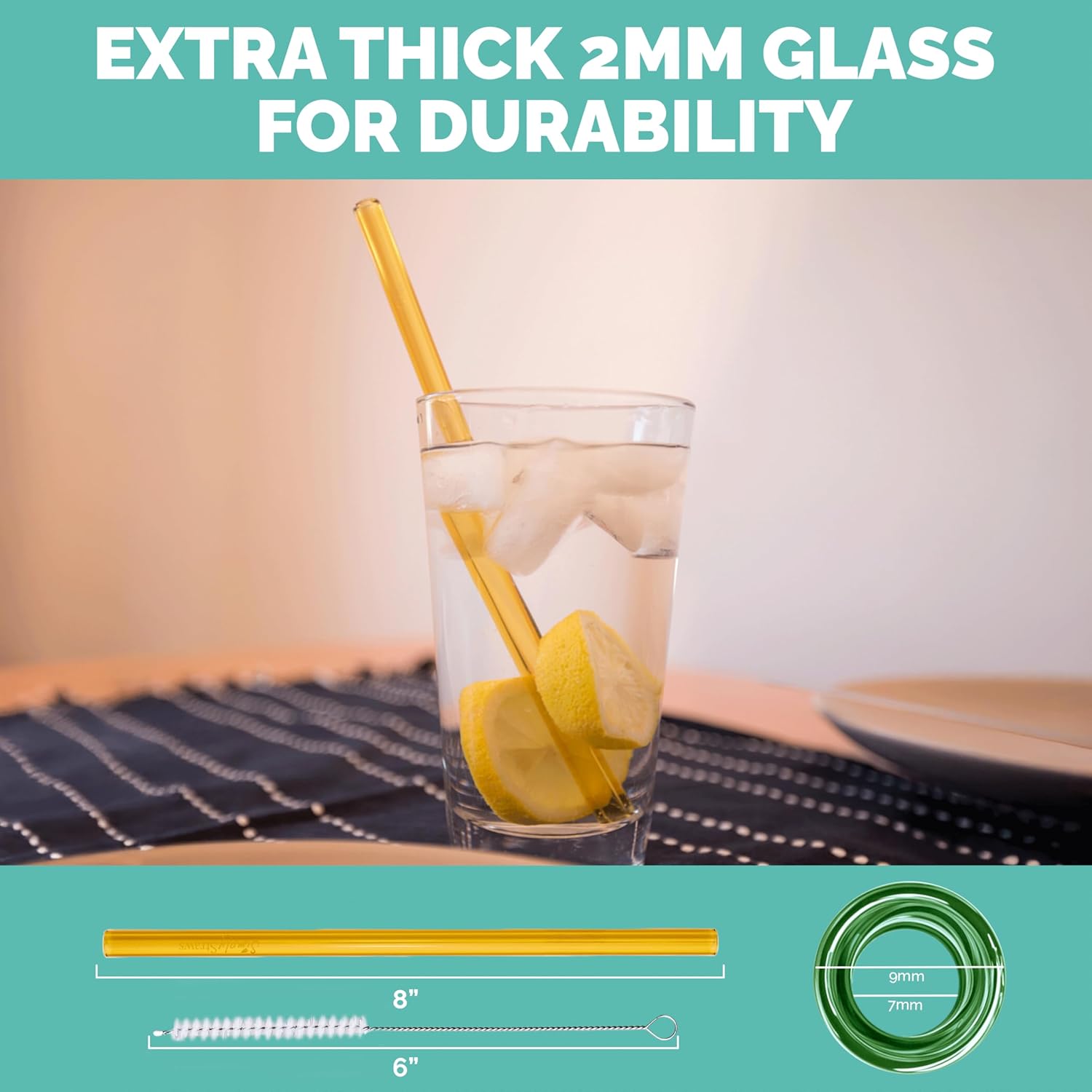 - Sized for Pint & Juice Glasses: These 8 inch glass straws are designed for 6" tall glasses—perfect for pints, juices, and casual everyday drinks. 9mm outside diameter ensures smooth flow.