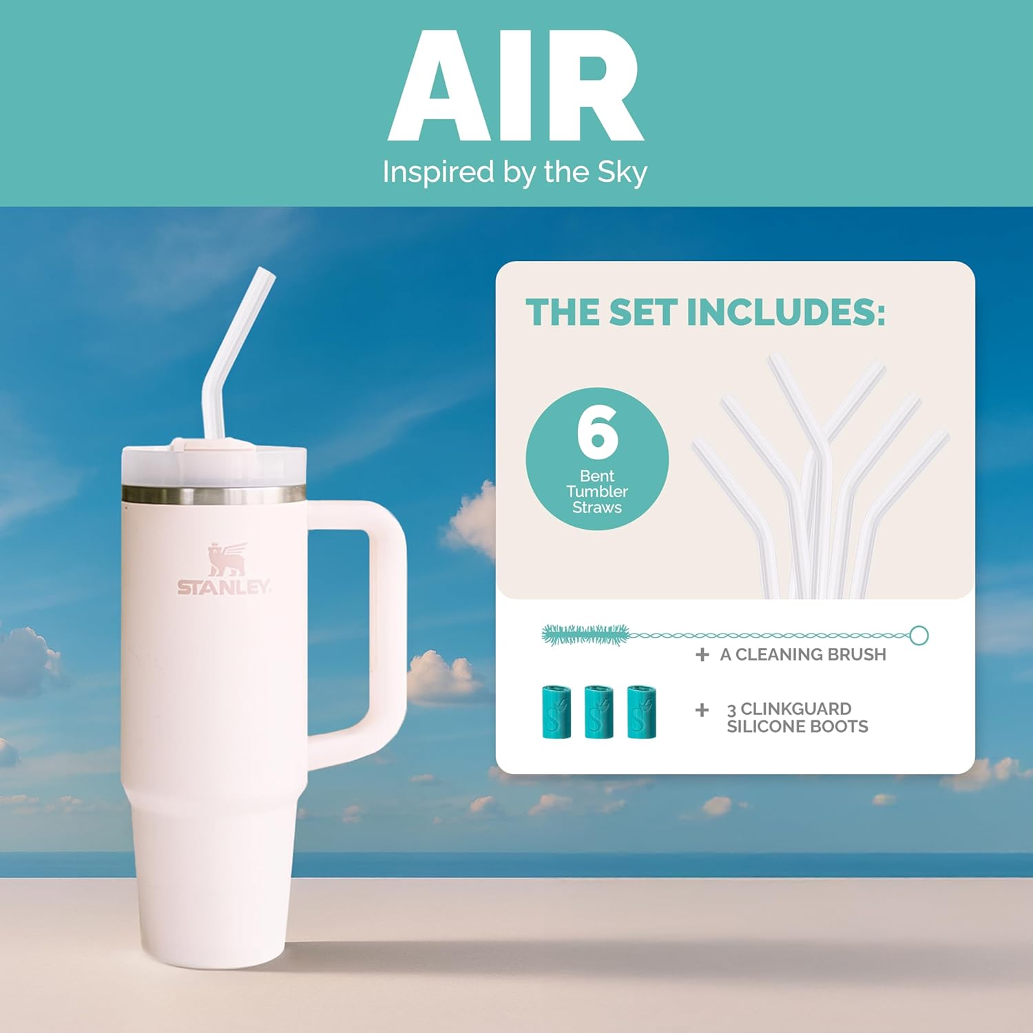 Simply Straws 12 Inch Glass Straws Bent (6-Pack) – Reusable Glass Straws for Stanley 40 Oz Tumbler, with Cleaning Brush – Durable, Dishwasher Safe, Hot & Cold Use, BPA-Free (Air)