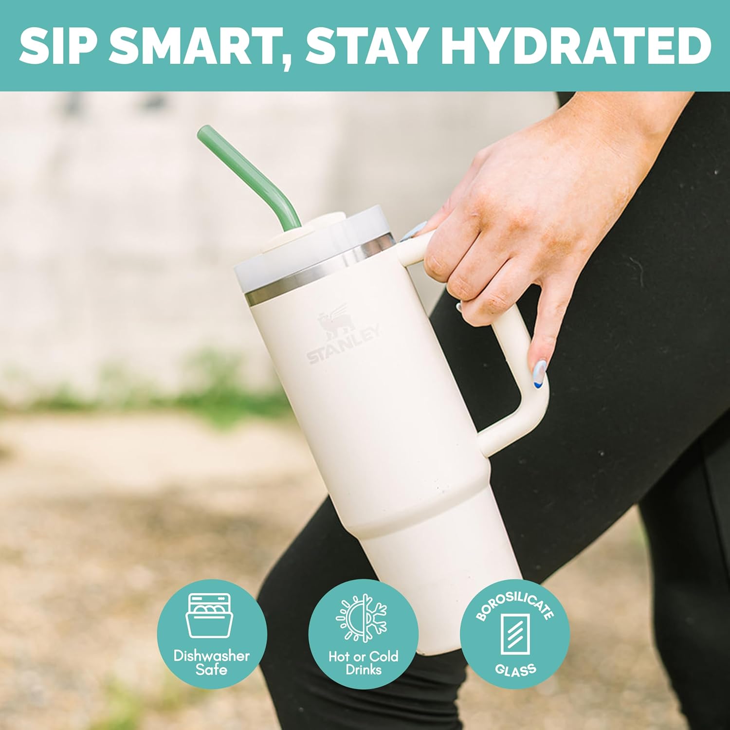 - Fit 30–40 Oz Tumblers: These 12 inch glass straws are made to fit Stanley, Yeti, Owala, and other 30–40 oz tumblers and hydration bottles with a snug 10mm outside diameter.