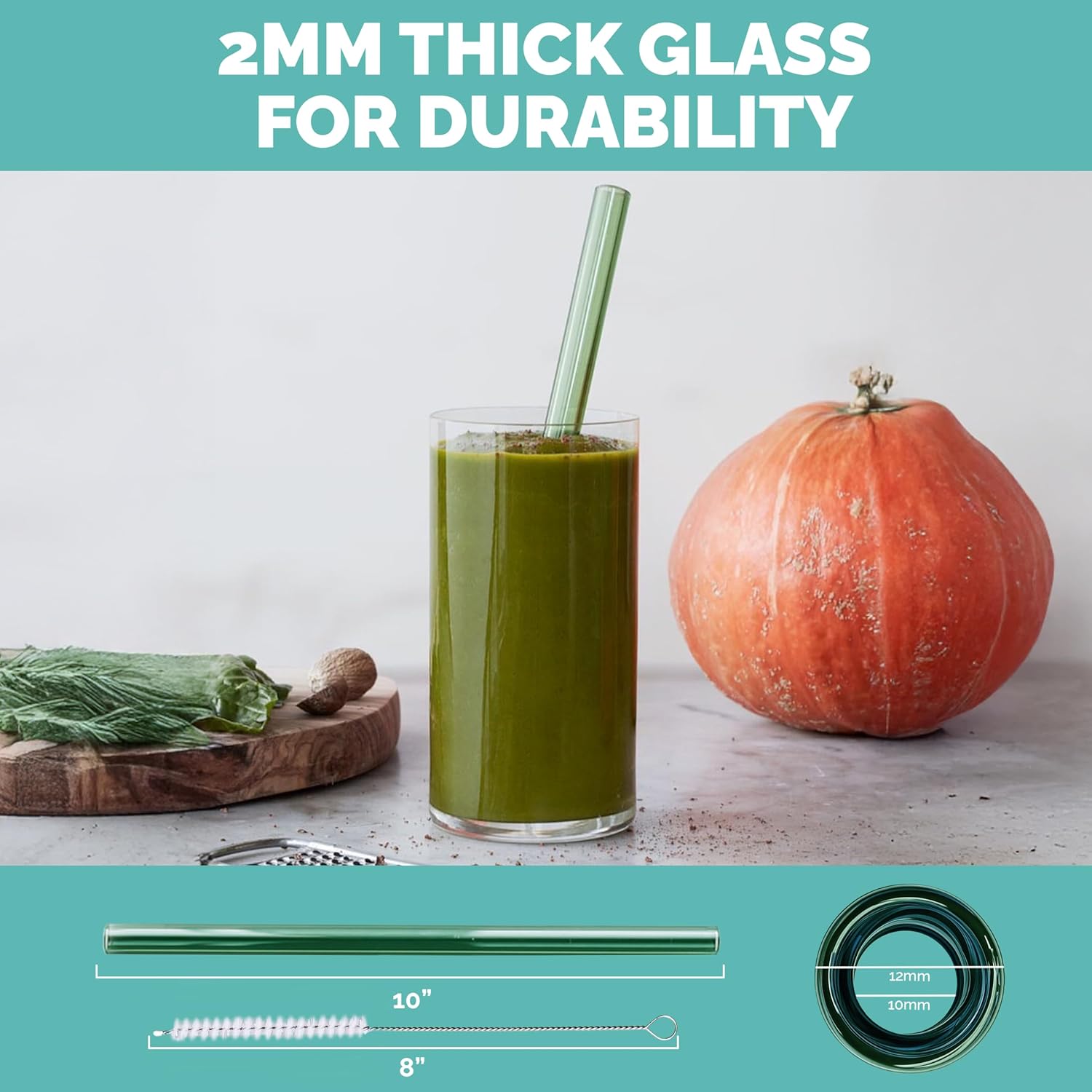- Sized for Big Drinks: Each 10 inch glass smoothie straw is designed for tall cups, tumblers, and jars—perfect for bubble tea, protein shakes, and frozen blends.