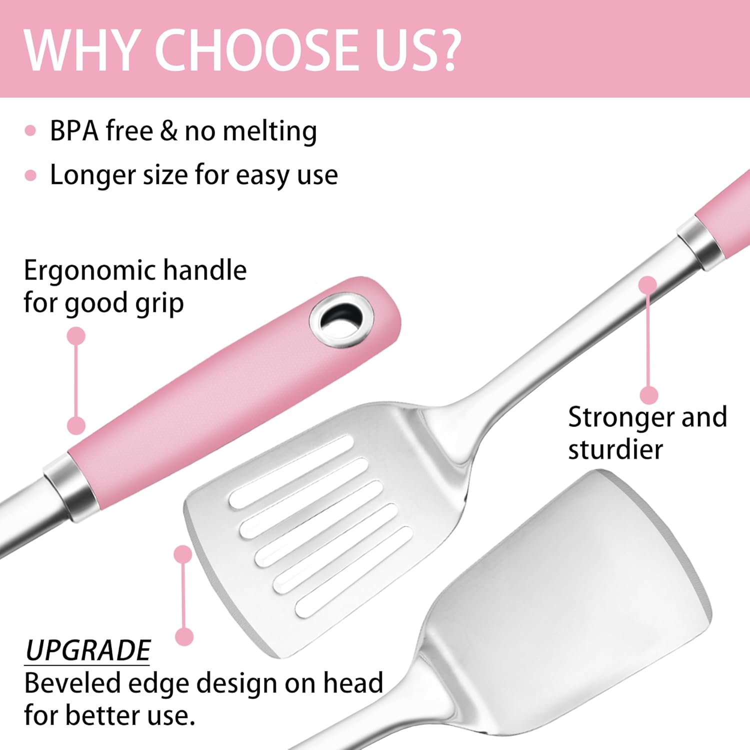 - HEAVY DUTY - The pink spatula weights 148 grams and offers a thickened handle and feel that won't bend easily. We made beveled edge design on spatula for better use from 2025/01.