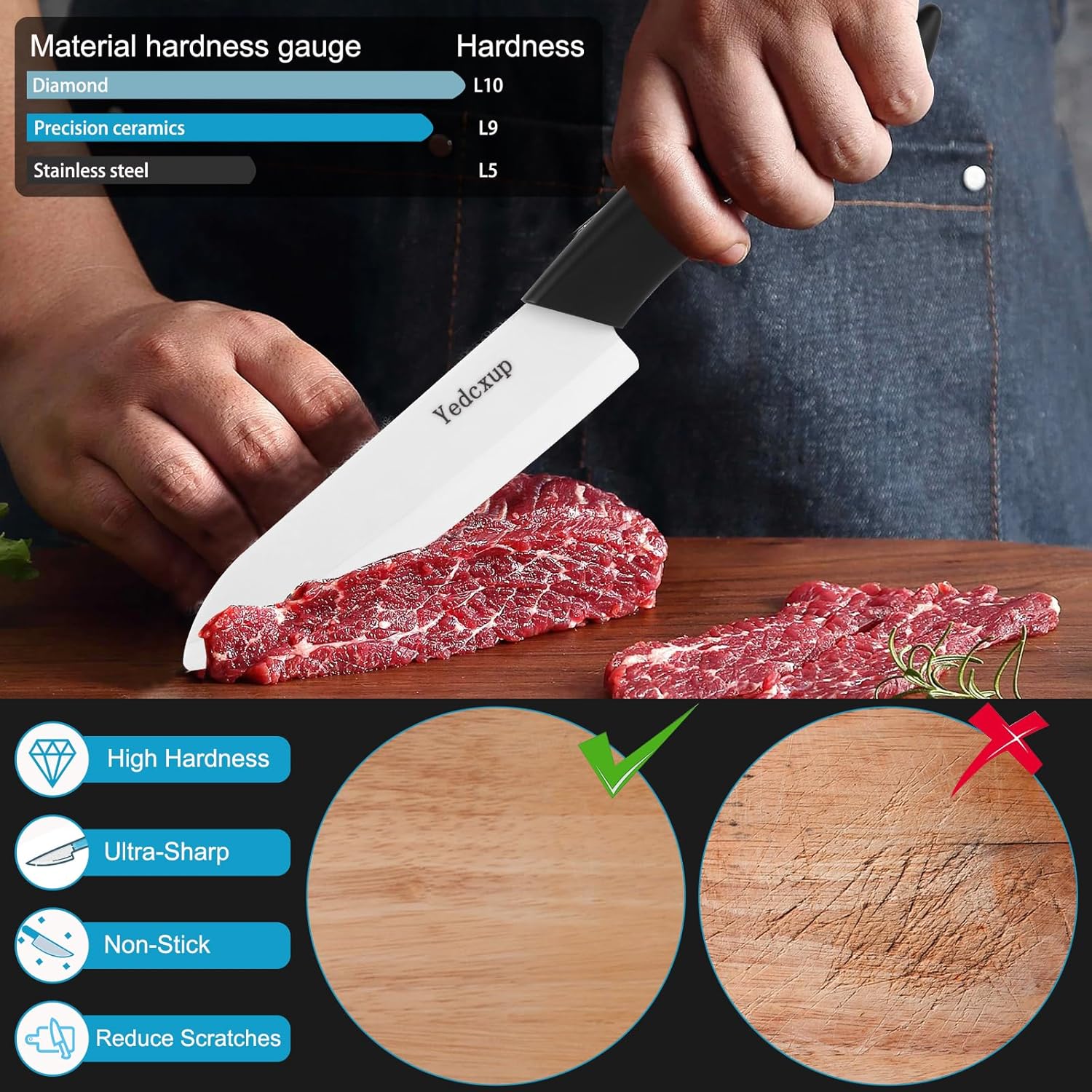 - 【EASY TO CLEAN, SAFE AND HEALTHY】—The non-porous structure design is easy to clean, ceramic knives can only be washed by hand,and cannot be washed in the dishwasher. eaving no lingering metallic taste, and ensures the cut ingredients retain their vibrant color and nutrients, thereby safeguarding the healthy diet of the family.